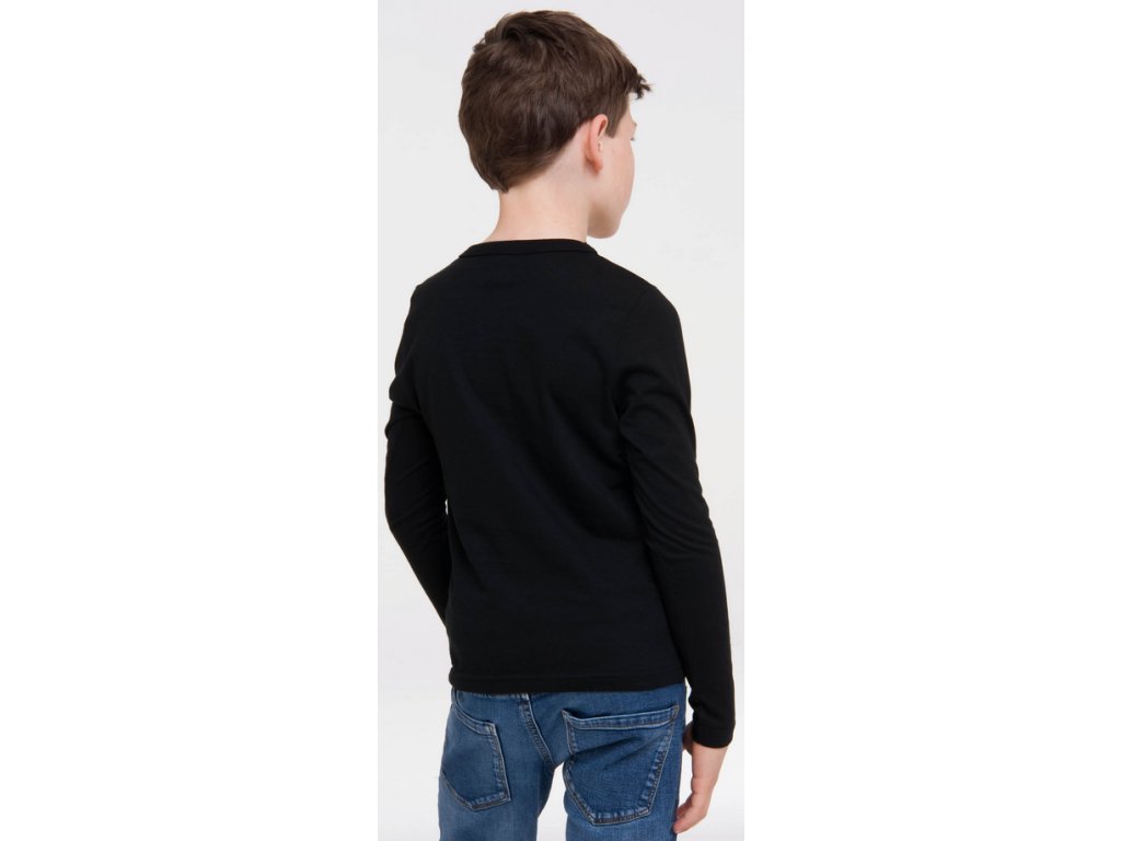 Dětské černé tričko s dlouhým rukávem a bílým motivem Kouzelnické školy čar a kouzel v Bradavicích na přední straně.
