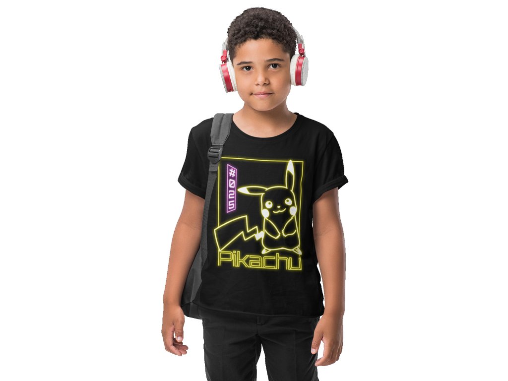 Černé dětské tričko inspirované hlavní postavičkou Pikachu.