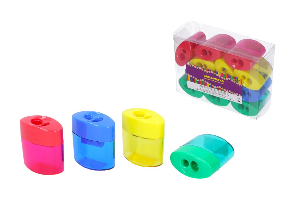 Ořezávátko na dvě tužky se zásobníkem průhledné - 4 barvy