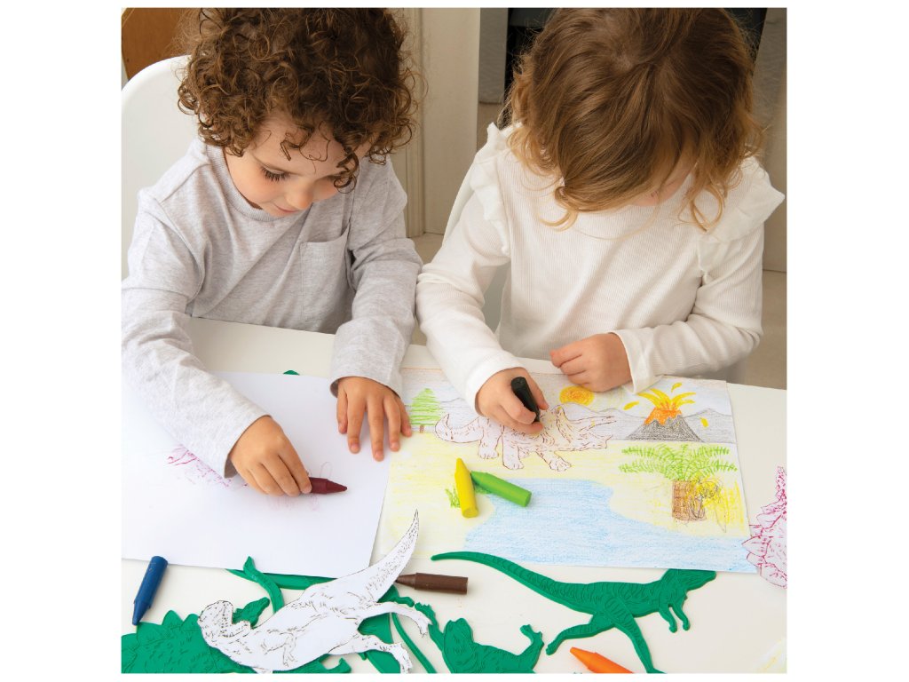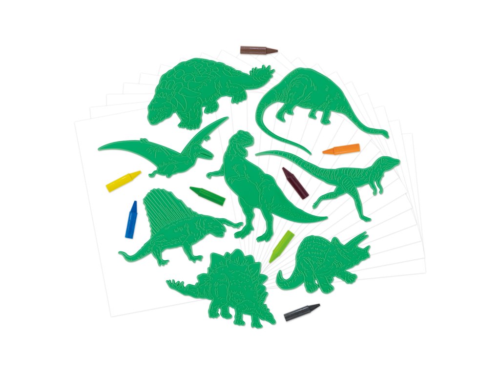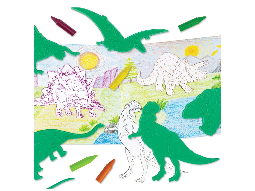 Tento klasický set šablon nabízí realistické ztvárnění dinosaurů s vyvýšenými detaily, které jsou ideální pro mladé umělce.