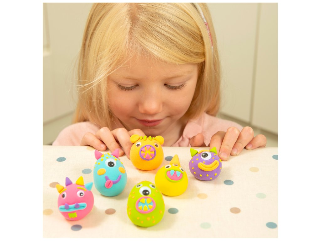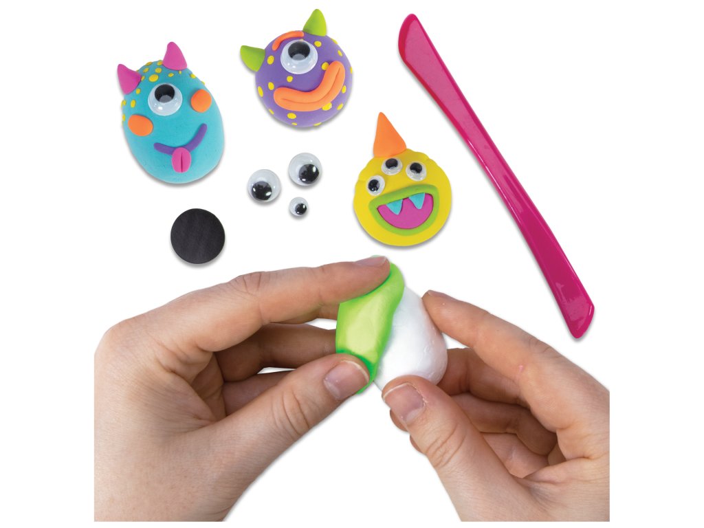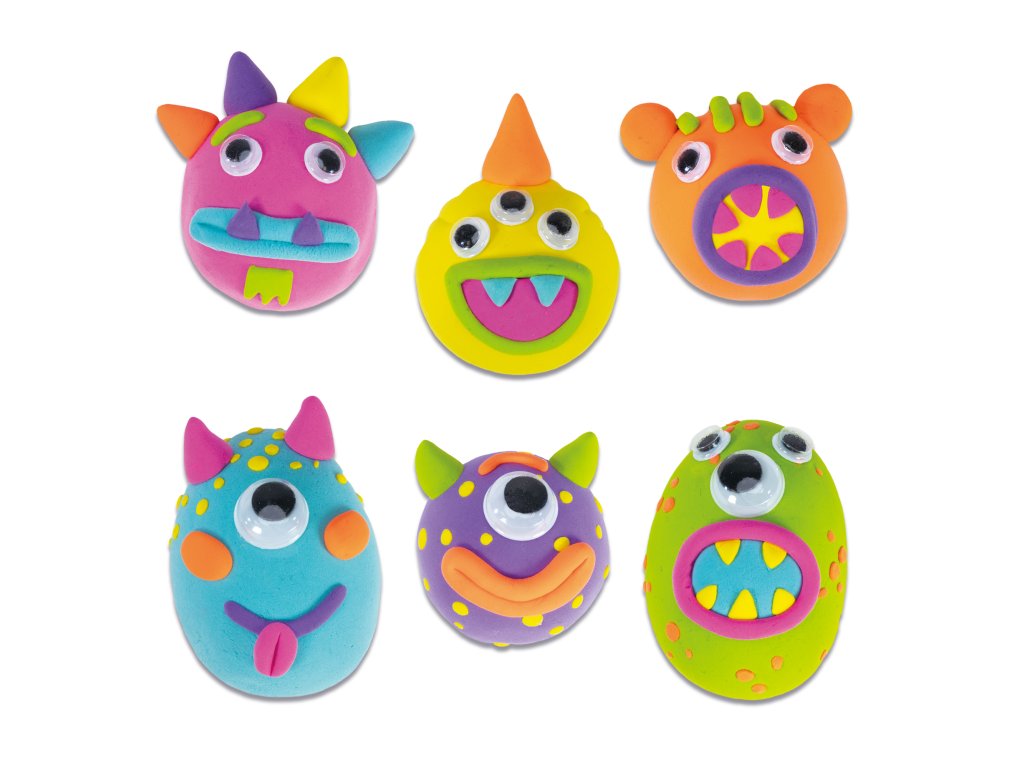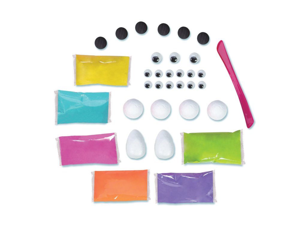 Obsah balení: 6 x 14g balení měkké modelovací hmoty schnoucí na vzduchu, 6 polystyrenových koulích, 6 lepicích magnetů, 15 pohyblivých oček, modelovací nástroj a anglický průvodce.