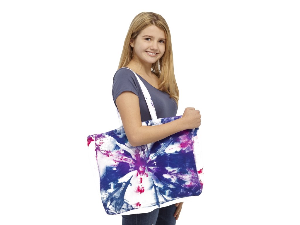 Je to sada. která má vše co potřebujete k výrobě batikovaných triček nebo třeba plátěných tašek.