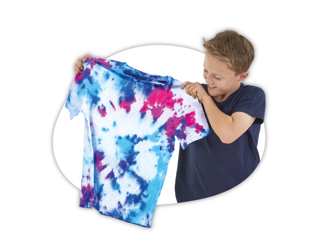 Děti navíc při batikování neudělají nepořádek. Celý proces barvení probíhá v kouzelné míchací kouli, která se opravdu snadno používá a výsledky jsou dokonalé!