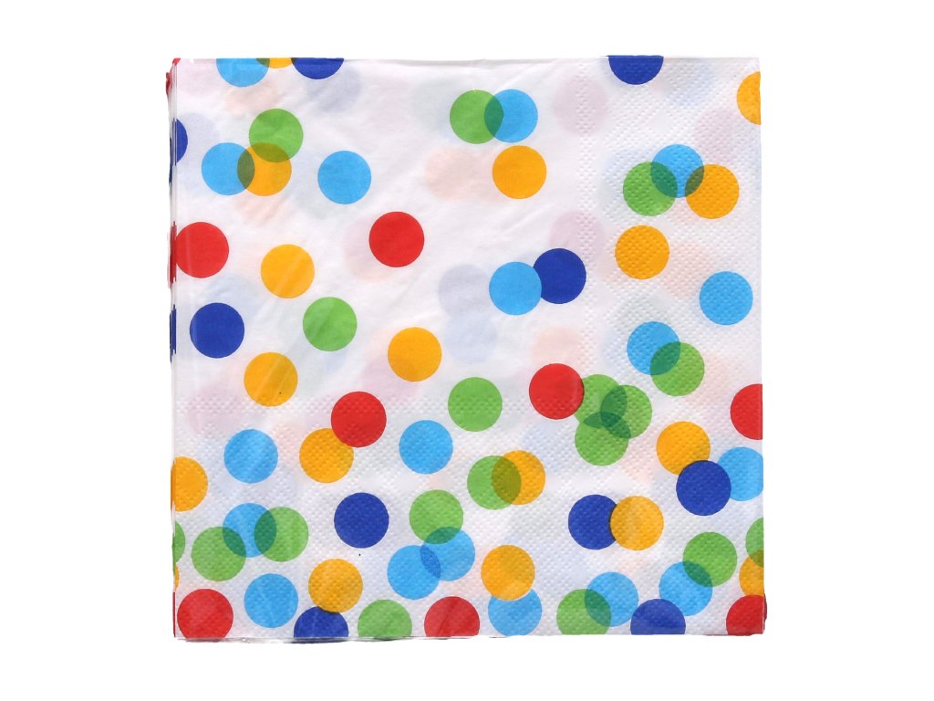 Papírové párty ubrousky TEČKY o velikosti 33x33 cm.