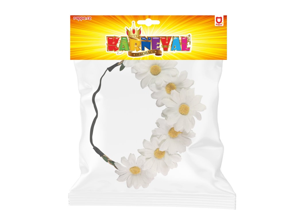 Nepřehlédnutelná čelenka nejen na karneval se stane vašim parádním doplňkem. Čelenka je na gumu a je zdobená květy. Senzace!