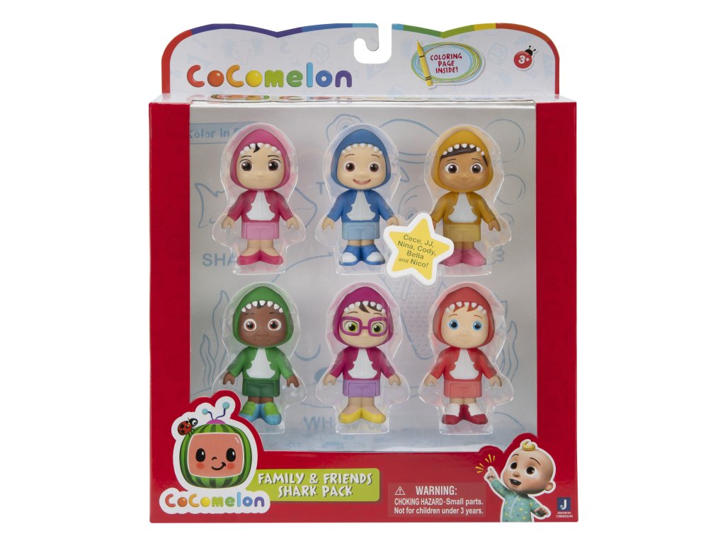 Je čas na veselou zábavu s rodinou a přáteli JJ ze seriálu CoComelon s touto inspirativní sadou 6 figurek žraločími motivy! Připojte k JJ, Nicovi, Codymu, Nině, Belle a Cece, až si budou hrát a zpívat ve svých roztomilých mikinách žraloky! Vaše dítě si bude rádo hrát a zpívat s nimi a při hře získá důležité dovednosti pohybem pohyblivých figurek. Sada 6 figurek CoComelon „Rodina a přátelé“ s motivem žraloka je perfektním dárek pro každého malého fanouška oblíbeného seriálu!