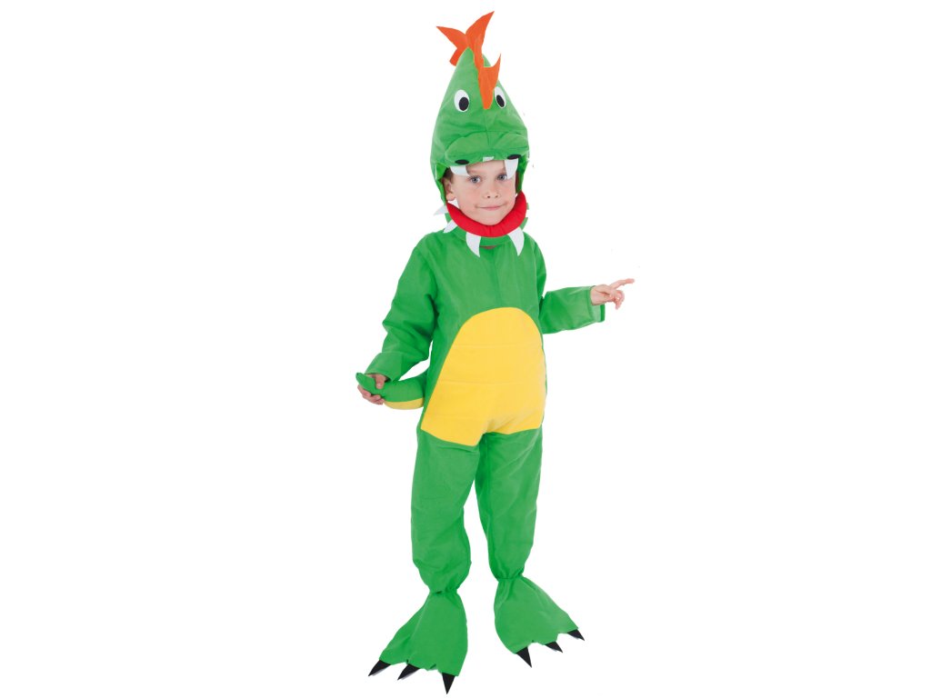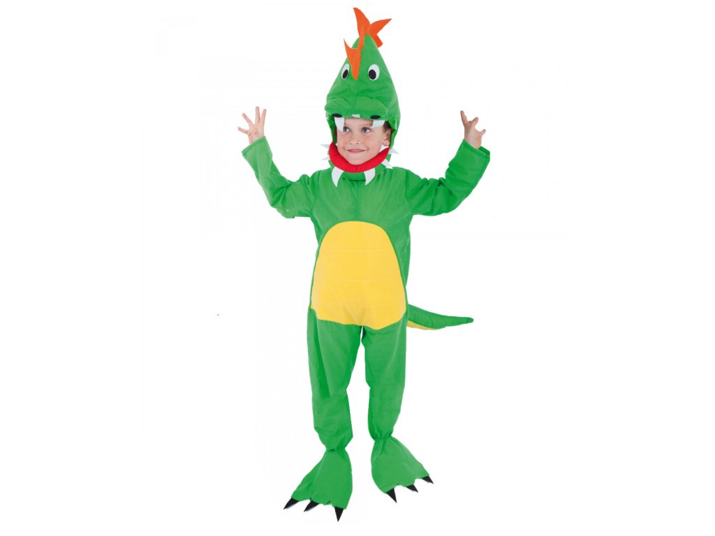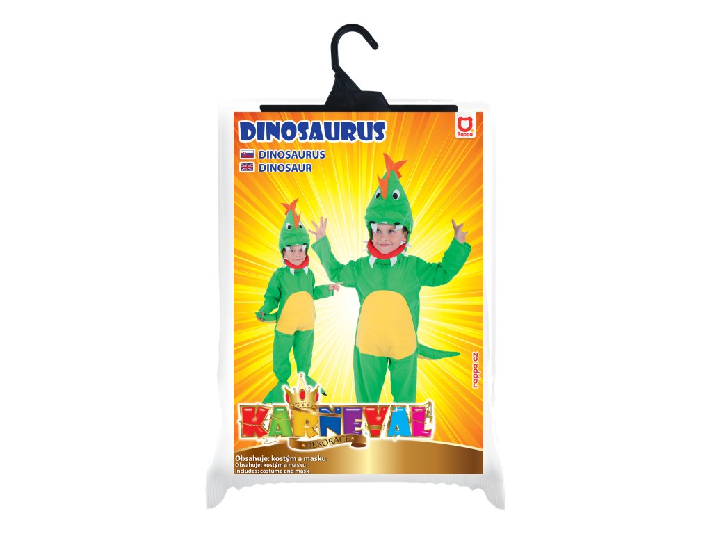 Veselý kostým dinosaura ve velikosti S. Kostým má dvě části - overal s ocasem a nasazovací hlavu s otevírací pusou. Velikost S je určena pro děti ve věkovém rozmezí 4-6 let (110-116 cm).