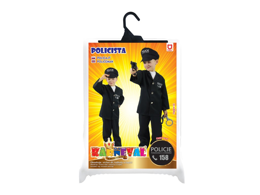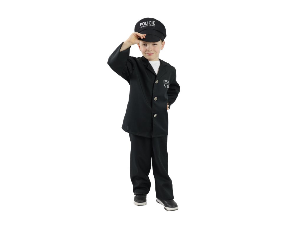 Staň se policistou v cuku, letu! Jakmile si oblečeš blůzu s nápisem POLICIE, kalhoty a čepici, v tu chvíli jsi připraven pomáhat a chránit! Kostým ve velikosti S je určen pro děti ve věkovém rozmezí 4-6 let (110-116 cm).