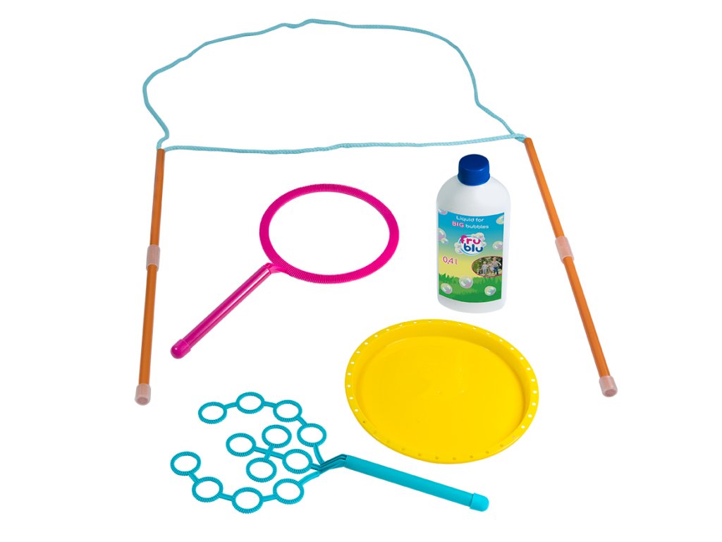Sada několika příslušenství, která umožňuje vytvářet bubliny různé velikosti: od malých (příslušenství Tree), přes větší (příslušenství Hoop), až po opravdu obrovské (příslušenství String).Sada obsahuje příslušenství: Hoop, Tree a String, talířek na tekutinu a láhev s tekutinou pro velké bubliny o objemu 400 ml.Nevhodné pro děti mladší 3 let.