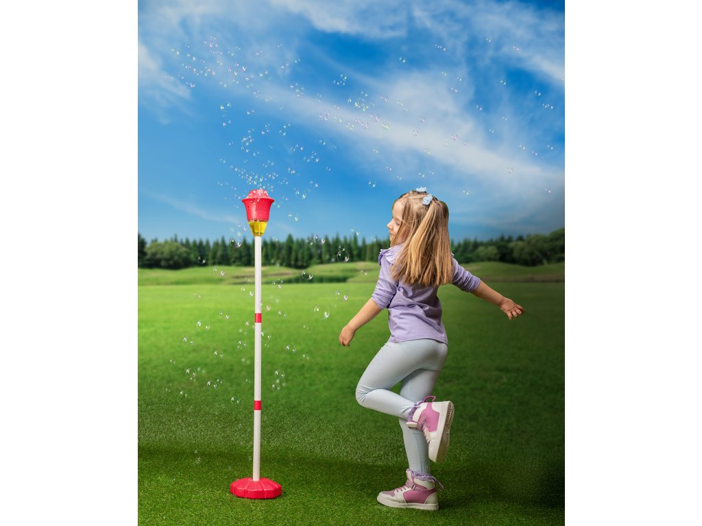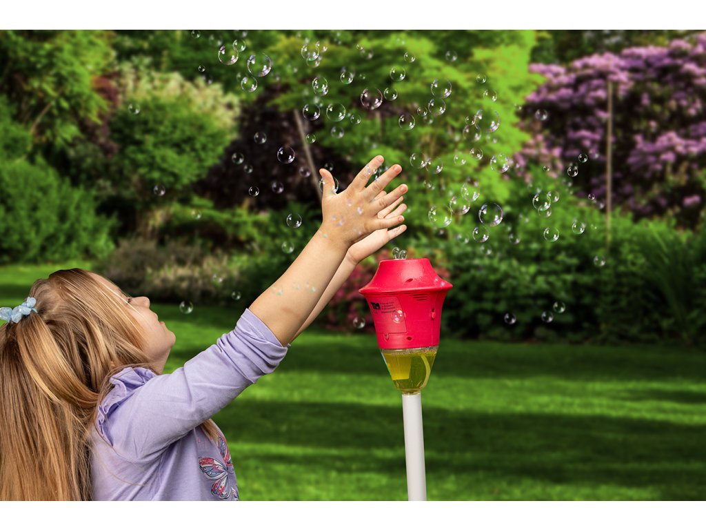 Stroj na bubliny ve tvaru lampy rychle vytvoří mrak malých bublin a díky náladovému podsvícení okouzlí svým vzhledem jak ve dne, tak i po setmění. Ideální pro různé akce, kde může sloužit jako hlavní atraktivní prvek nebo jemný doplněk, který dodá prostoru romantickou atmosféru. Je to vynikající volba pro velké i malé milovníky bublin.Stolní lampa pro bubliny Fru Blu může být zapíchnuta do země nebo trávy, nebo umístěna na speciálně navrženém podstavci, který lze snadno zatížit vodou pro zajištění stability na každém povrchu. Díky tomu je velmi univerzální a praktická v každé situaci.Sada obsahuje: stroj na bubliny ve tvaru lampy se světlem LED, podstavec, a 115 ml tekutiny pro malé bubliny.Je nutné použít 3 x 1,5 V AAA baterie (nejsou součástí balení). Nevhodné pro děti mladší 3 let.
