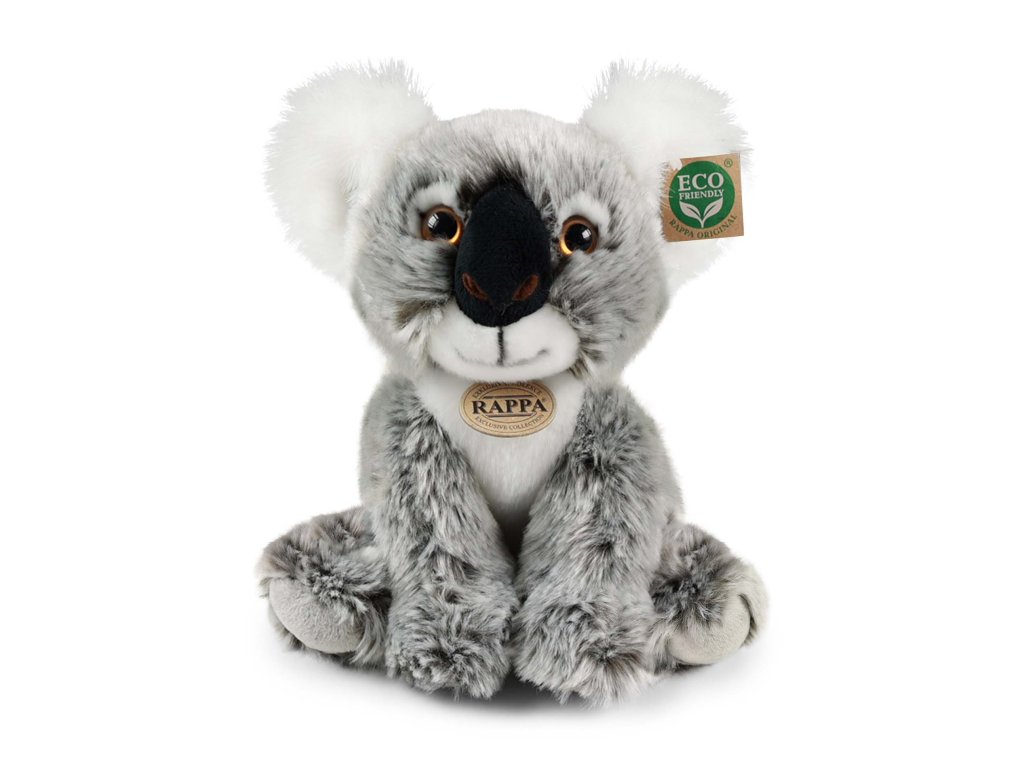 Plyšová koala je ručně ušitá z vysoce kvalitní, jemné plyše, a díky tomu vypadá jako živá. Tato sedící koala měří 26 cm. Pro svou roztomilost se stává vítaným společníkem nejen do každého dětského pokojíčku. Je součástí exkluzivní kolekce plyšových hraček RAPPA. Rozhodli jsme se jít zelenou cestou co nejméně zatěžující životní prostředí - cestou ECO-FRIENDLY. Co to vlastně ECO-FRIENDLY znamená? Výplň plyšové hračky je vyrobena z recyklovaných PET lahví. Tento materiál je zcela bezpečný, na omak nerozeznatelný od standardní výplně a plně atestovaný pro bezpečnost i těch nejmenších.