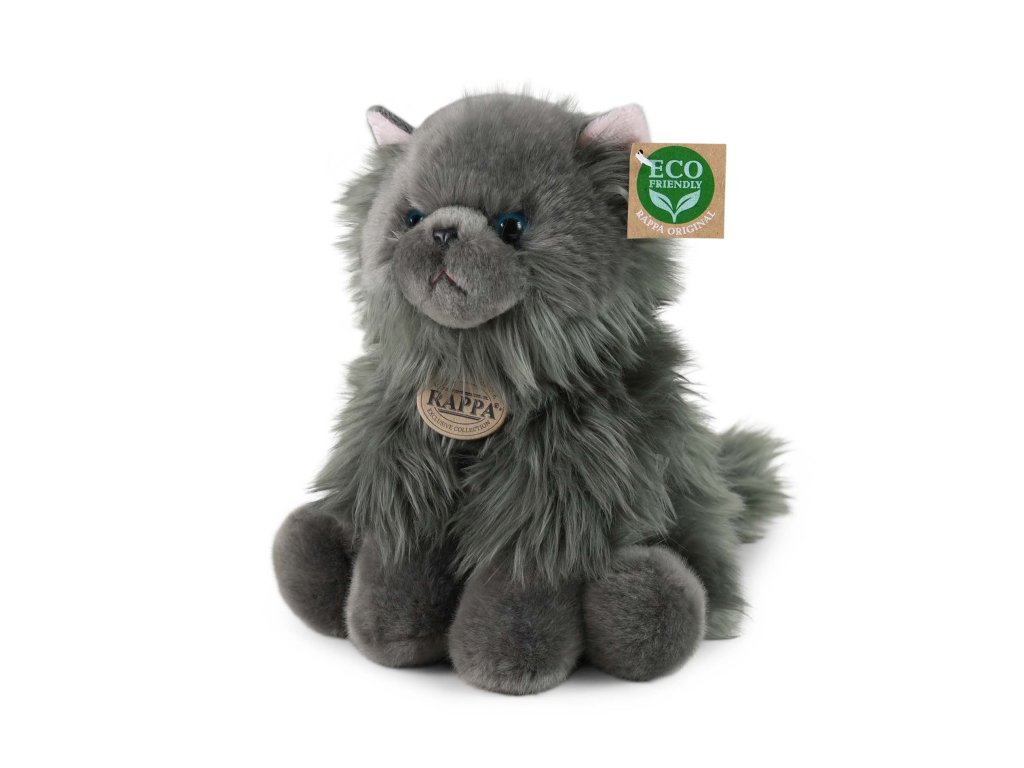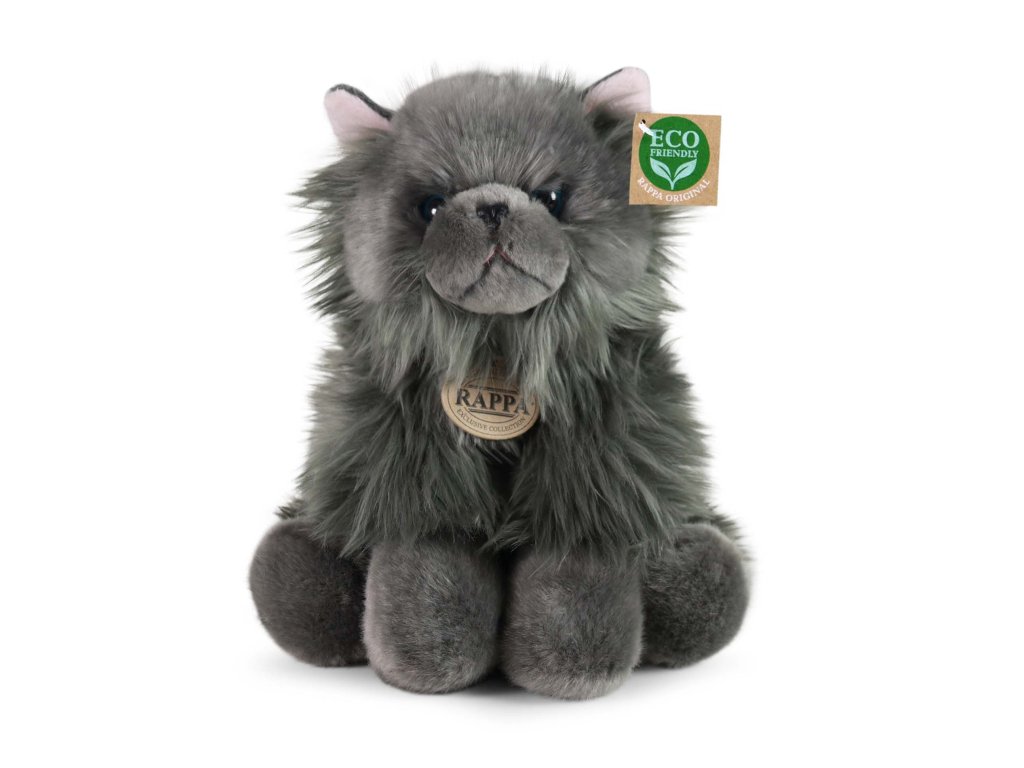 Nádherná plyšová kočka o velikosti 30 cm. Kočka je vyrobena z vysoce kvalitní plyše a je tak součástí exkluzivní kolekce plyšových hraček RAPPA. Co to vlastně ECO-FRIENDLY znamená? Výplň plyšové hračky je vyrobena z recyklovaných PET lahví. Tento materiál je zcela bezpečný, na omak nerozeznatelný od standardní výplně a plně atestovaný pro bezpečnost i těch nejmenších. Rozhodli jsme se jít zelenou cestou co nejméně zatěžující životní prostředí- cestou ECO-FRIENDLY.