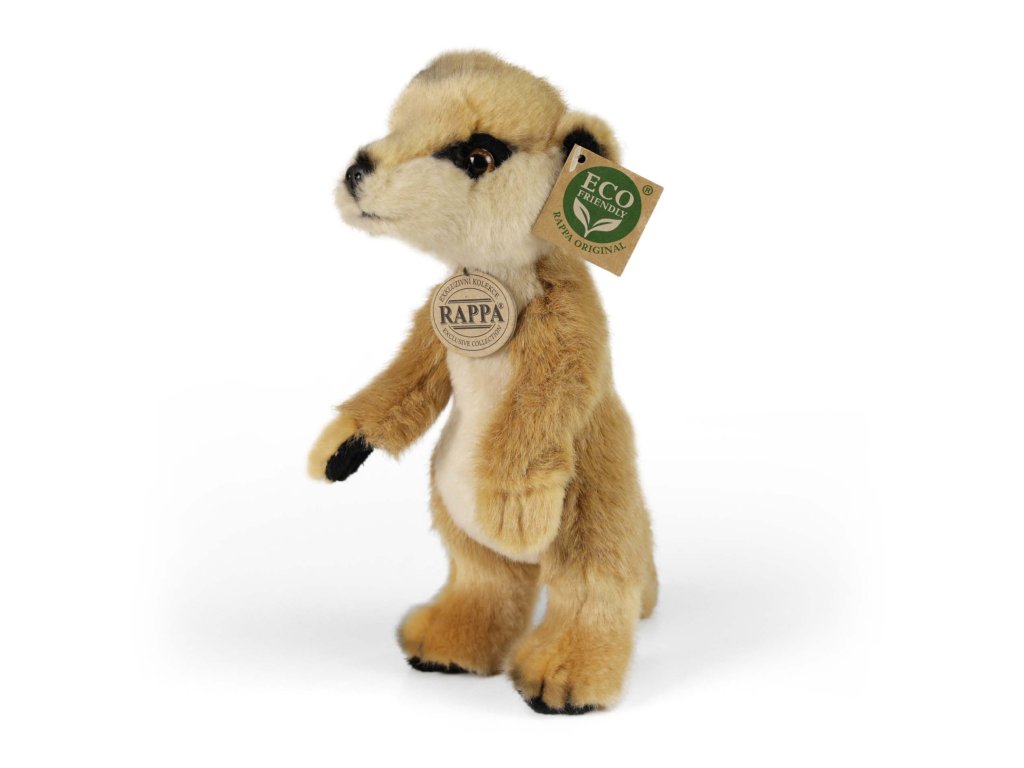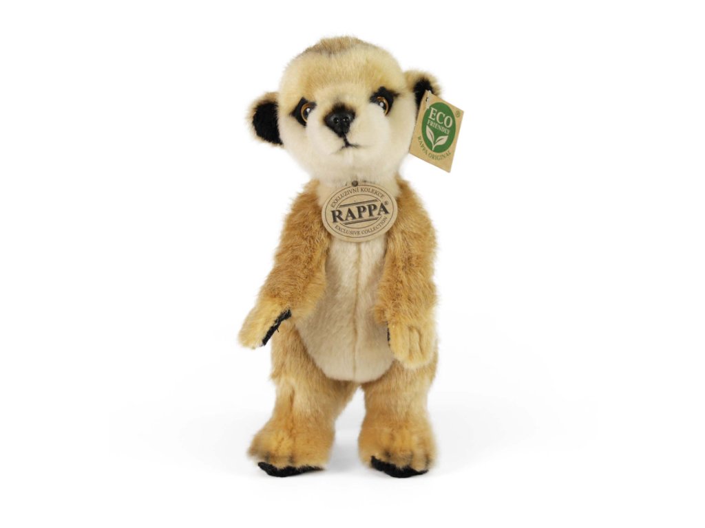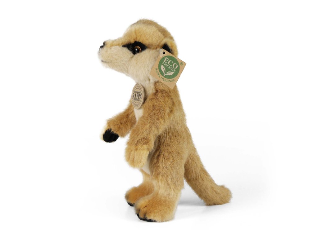 Roztomilá plyšová surikata stojící ve velikosti 23 cm. Surikata je vyrobena z vysoce kvalitní plyše a je tak součástí exkluzivní kolekce plyšových hraček RAPPA. Rozhodli jsme se jít zelenou cestou co nejméně zatěžující životní prostředí - cestou ECO-FRIENDLY. Co to vlastně ECO-FRIENDLY znamená? Výplň plyšové hračky je vyrobena z recyklovaných PET lahví. Tento materiál je zcela bezpečný, na omak nerozeznatelný od standardní výplně a plně atestovaný pro bezpečnost i těch nejmenších.