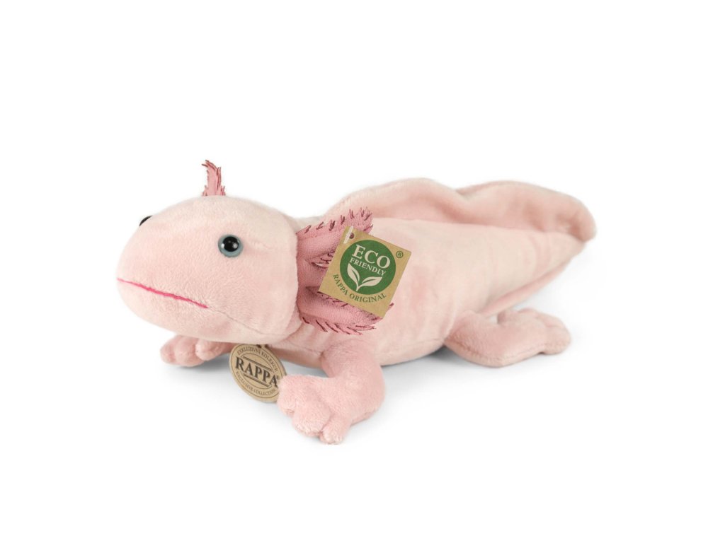 Roztomilý plyšový axolotl ve velikosti 33 cm. Axolotl je vyroben z vysoce kvalitní plyše a je tak součástí exkluzivní kolekce plyšových hraček RAPPA. Rozhodli jsme se jít zelenou cestou co nejméně zatěžující životní prostředí - cestou ECO-FRIENDLY. Co to vlastně ECO-FRIENDLY znamená? Výplň plyšové hračky je vyrobena z recyklovaných PET lahví. Tento materiál je zcela bezpečný, na omak nerozeznatelný od standardní výplně a plně atestovaný pro bezpečnost i těch nejmenších.