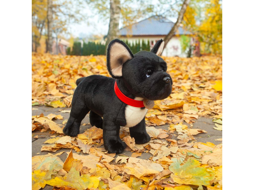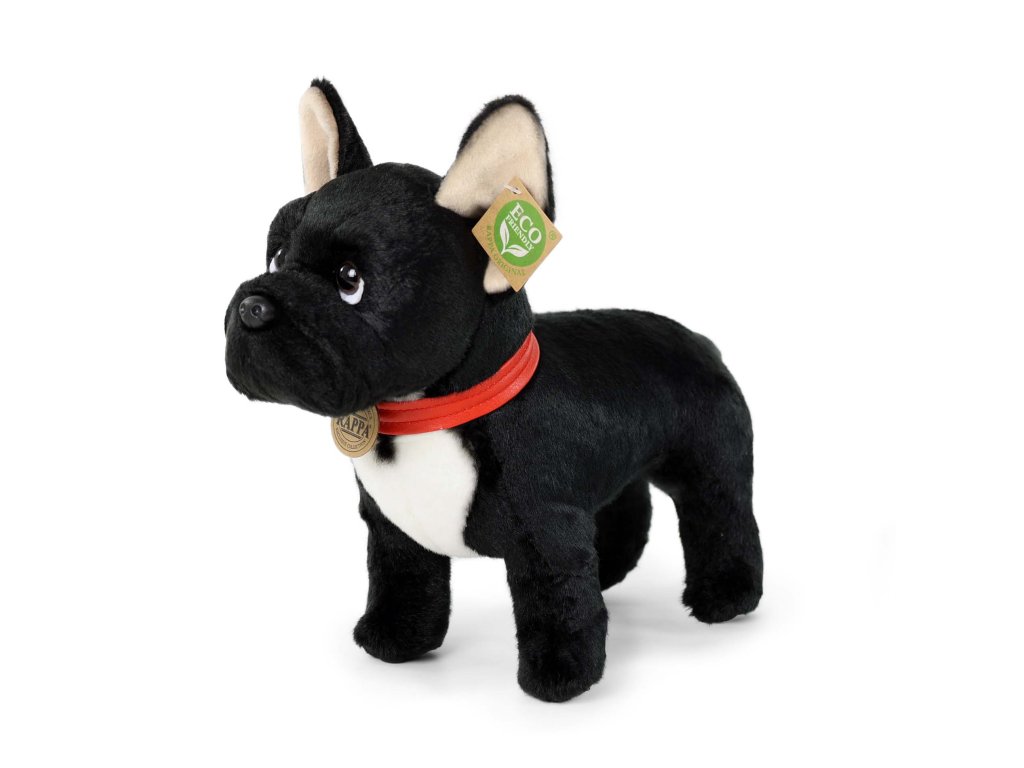Plyšový francouzský buldoček černý s obojkem stojící 30 cm ECO-FRIENDLY