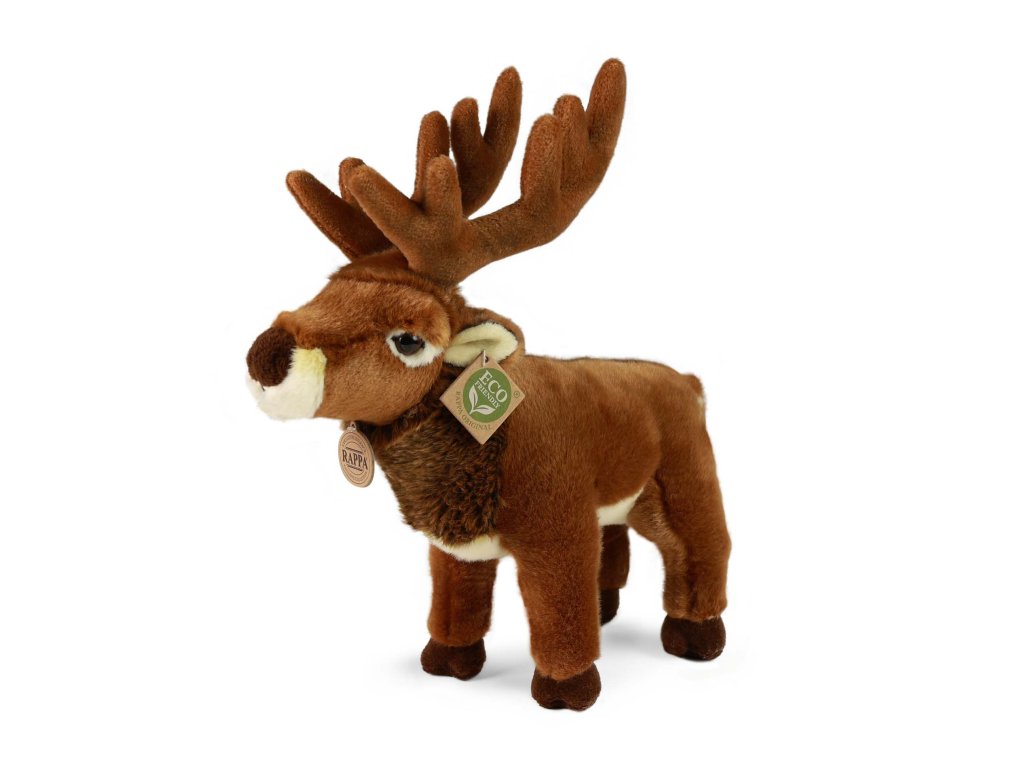 Krásný plyšový jelen ve velikosti 34 cm je vyroben z vysoce kvalitní plyše a je tak součástí exkluzivní kolekce plyšových hraček RAPPA. Tento plyšový kousek je ideálním dárkem pro všechny milovníky roztomilých plyšáků! Co to vlastně ECO-FRIENDLY znamená? Výplň plyšové hračky je vyrobena z recyklovaných PET lahví. Tento materiál je zcela bezpečný, na omak nerozeznatelný od standartní výplně a plně atestovaný pro bezpečnost i těch nejmenších. Rozhodli jsme se jít zelenou cestou co nejméně zatěžující životní prostředí- cestou ECO-FRIENDLY.