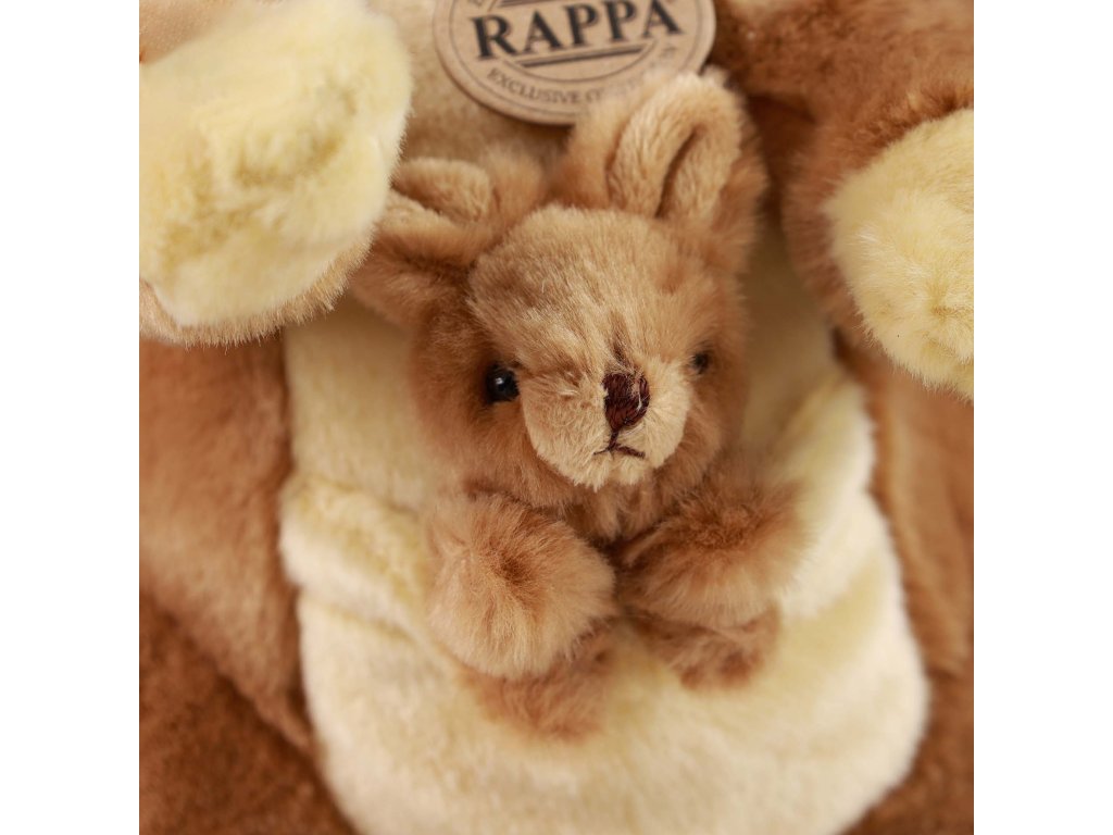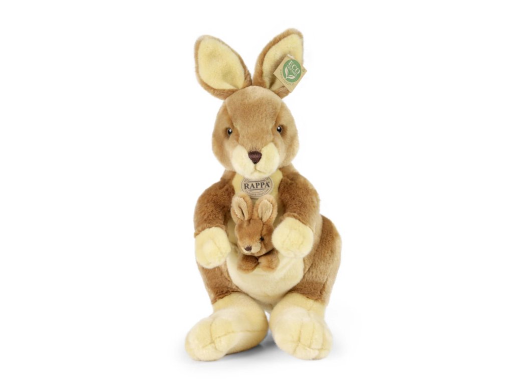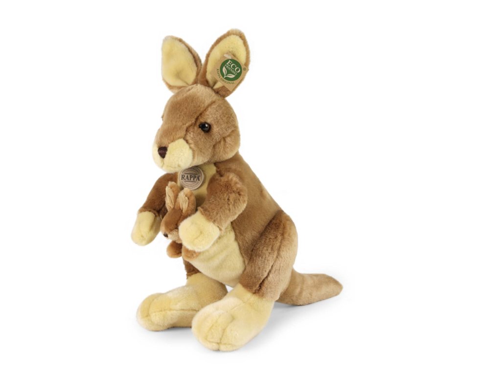 Nádherný plyšový klokan s mládětem o velikosti 37 cm. Součástí je mláďátko ve velikosti cca 11 cm, které se dá z vaku po odstřižení vytáhnout. Klokan je vyroben z vysoce kvalitní plyše a je tak součástí exkluzivní kolekce plyšových hraček RAPPA. Rozhodli jsme se jít zelenou cestou co nejméně zatěžující životní prostředí - cestou ECO-FRIENDLY. Co to vlastně ECO-FRIENDLY znamená? Výplň plyšové hračky je vyrobena z recyklovaných PET lahví. Tento materiál je zcela bezpečný, na omak nerozeznatelný od standardní výplně a plně atestovaný pro bezpečnost i těch nejmenších.