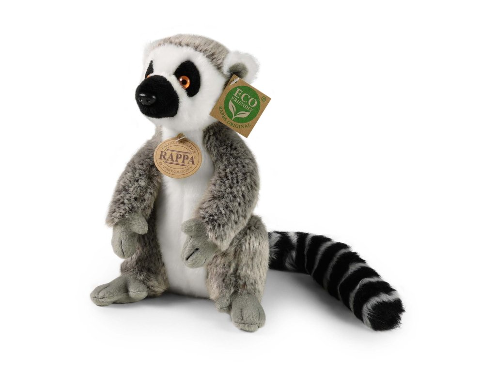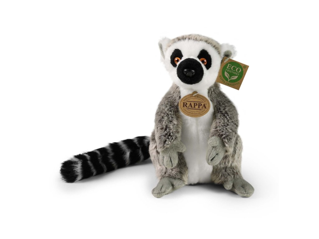 Krásný plyšový lemur ve velikosti 22 cm. Lemur je vyroben z vysoce kvalitní plyše a je tak součástí exkluzivní kolekce plyšových hraček RAPPA. Co to vlastně ECO-FRIENDLY znamená? Výplň plyšové hračky je vyrobena z recyklovaných PET lahví. Tento materiál je zcela bezpečný, na omak nerozeznatelný od standardní výplně a plně atestovaný pro bezpečnost i těch nejmenších. Rozhodli jsme se jít zelenou cestou co nejméně zatěžující životní prostředí- cestou ECO-FRIENDLY.