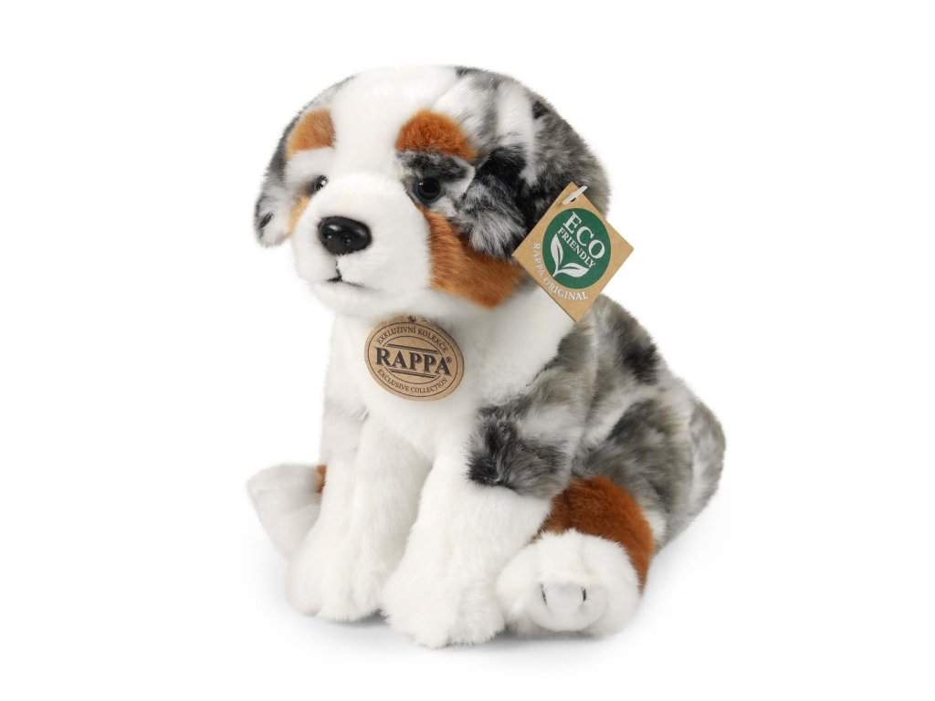 Plyšový pes rasy australsý ovčák měří 23 cm a díky těm nejkvalitnějším materiálům se řadí do Exkluzivní kolekce plyšových hraček značky Rappa. Díky ručnímu zpracování každého kusu navíc vypadá jako živý. Proč označení ECO-FRIENDLY? Rappa si je vědoma všech dopadů na životního prostředí, zaměřuje se na udržitelnost a omezení používání plastů na minimum. Proto je výplň hraček vyrobena z recyklovaných materiálů, zejména PET lahví. Ta je však zcela nezávadná a vhodná i pro děti od narození. FUN FACT: Věděli jste, že australský ovčák má jedno z nejvyšších IQ mezi plemeny psů, což znamená, že je snadno vycvičitelný?