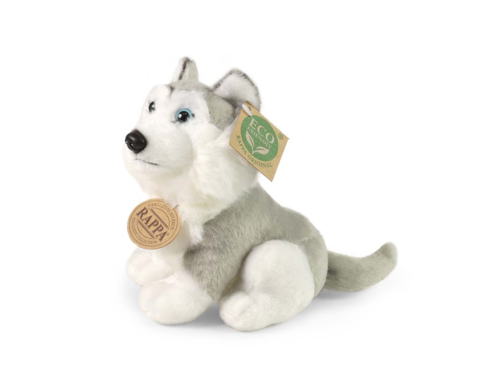 Plyšový pes husky ve velikosti 16 cm je vyroben z vysoce kvalitní plyše a je tak součástí exkluzivní kolekce plyšových hraček RAPPA. Co to vlastně ECO-FRIENDLY znamená? Výplň plyšové hračky je vyrobena z recyklovaných PET lahví. Tento materiál je zcela bezpečný, na omak nerozeznatelný od standardní výplně a plně atestovaný pro bezpečnost i těch nejmenších. Rozhodli jsme se jít zelenou cestou co nejméně zatěžující životní prostředí- cestou ECO-FRIENDLY.