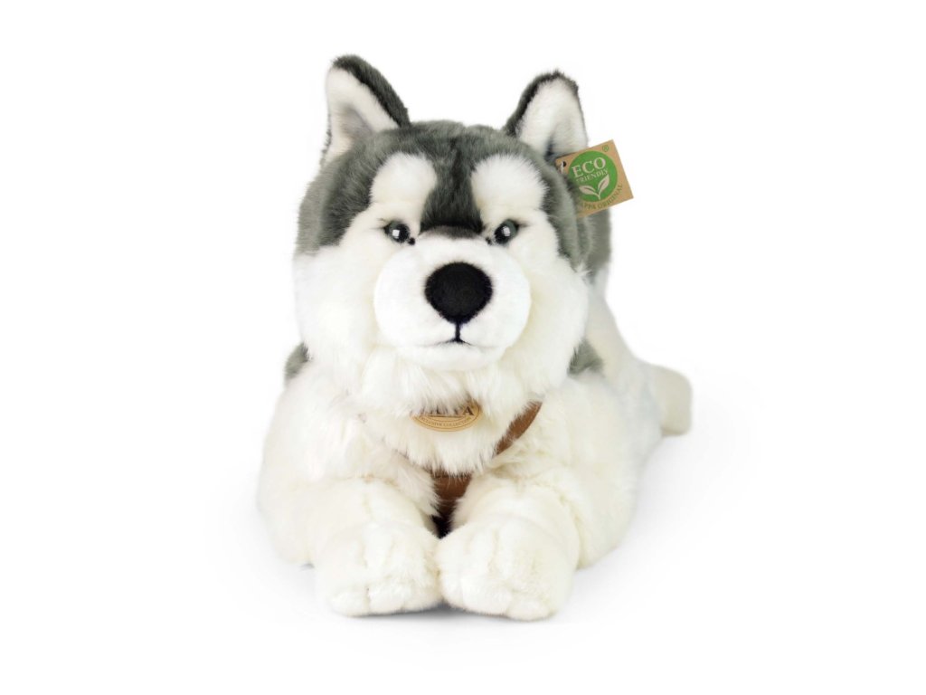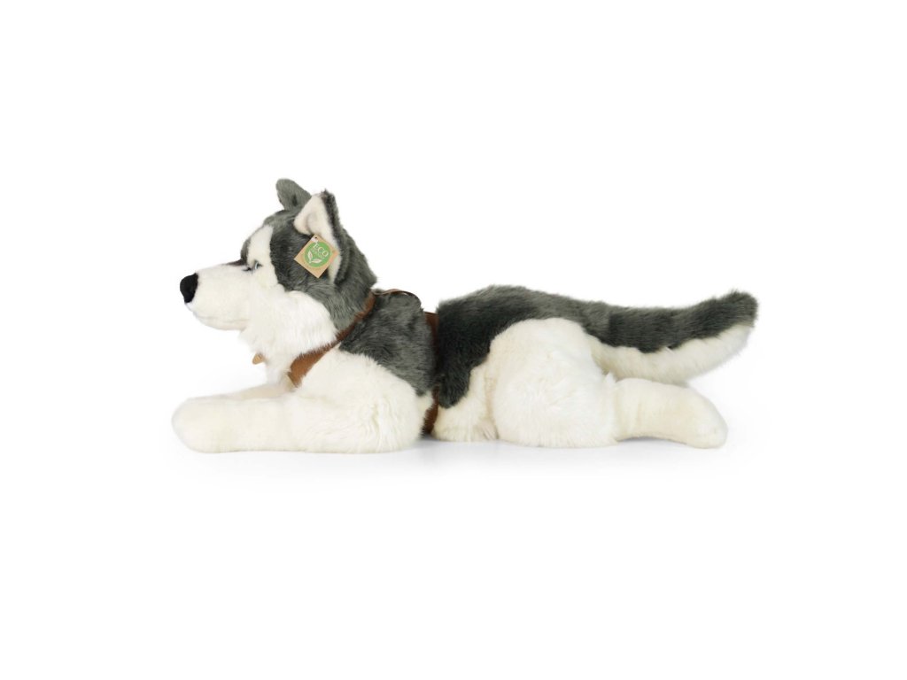 Plyšový pes husky s obojkem ležící 60 cm ECO-FRIENDLY