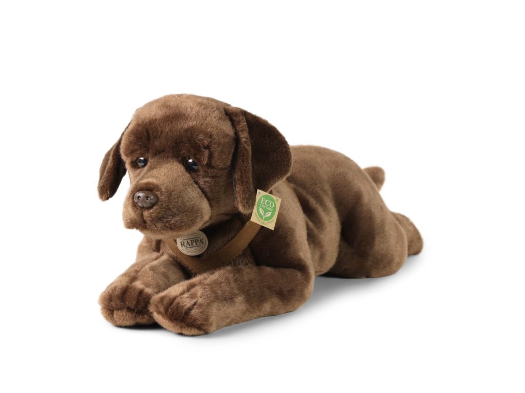 Roztomilý plyšový pes labrador hnědé barvy ve velikosti 61cm může být ideálním dárkem pro každého, kdo má rád zvířata nebo miluje přírodu. Je vyroben z měkkého a jemného materiálu, který je příjemný na dotek a je tak součástí exkluzivní kolekce plyšových hraček RAPPA. Co to vlastně ECO-FRIENDLY znamená? Výplň plyšové hračky je vyrobena z recyklovaných PET lahví. Tento materiál je zcela bezpečný, na omak nerozeznatelný od standardní výplně a plně atestovaný pro bezpečnost i těch nejmenších. Rozhodli jsme se jít zelenou cestou co nejméně zatěžující životní prostředí- cestou ECO-FRIENDLY.