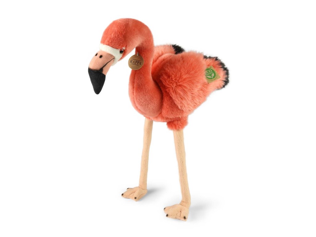 Plyšový plameňák o velikosti 46 cm je ručně ušitý z vysoce kvalitní, jemné plyše, a díky tomu vypadá jako živý. Je součástí exkluzivní kolekce plyšových hraček RAPPA. Rozhodli jsme se jít zelenou cestou co nejméně zatěžující životní prostředí - cestou ECO-FRIENDLY. Co to vlastně ECO-FRIENDLY znamená? Výplň plyšové hračky je vyrobena z recyklovaných PET lahví. Tento materiál je zcela bezpečný, na omak nerozeznatelný od standardní výplně a plně atestovaný pro bezpečnost i těch nejmenších.