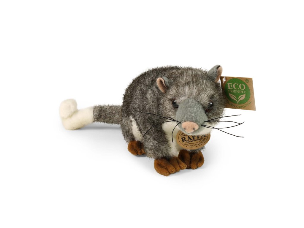 Plyšový possum měří 23 cm a díky těm nejkvalitnějším materiálům se řadí do Exkluzivní kolekce plyšových hraček značky Rappa. Díky ručnímu zpracování každého kusu navíc vypadá jako živý. Proč označení ECO-FRIENDLY? Rappa si je vědoma všech dopadů na životního prostředí, zaměřuje se na udržitelnost a omezení používání plastů na minimum. Proto je výplň hraček vyrobena z recyklovaných materiálů, zejména PET lahví. Ta je však zcela nezávadná a vhodná i pro děti od narození. FUN FACT: Věděli jste, že possumové předstírají smrt, aby unikli predátorům?