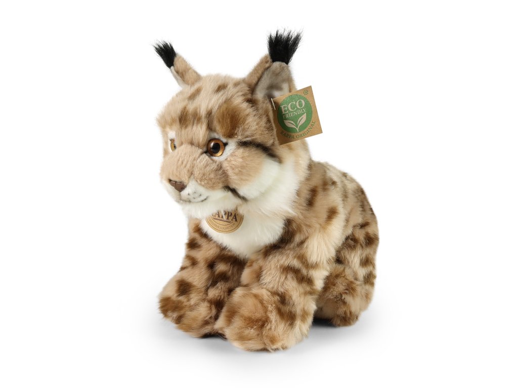 Krásný plyšový rys nesmí chybět ve tvé sbírce zvířátek! Rys o velikosti 27 cm je vyroben z exkluzivní, velmi kvalitní plyše a je součástí exkluzivní kolekce plyšových hraček RAPPA. Tento senzační plyšový kousek je ideální i jako dárek! Co to vlastně ECO-FRIENDLY znamená? Výplň plyšové hračky je vyrobena z recyklovaných PET lahví. Tento materiál je zcela bezpečný, na omak nerozeznatelný od standartní výplně a plně atestovaný pro bezpečnost i těch nejmenších. Rozhodli jsme se jít zelenou cestou co nejméně zatěžující životní prostředí- cestou ECO-FRIENDLY.