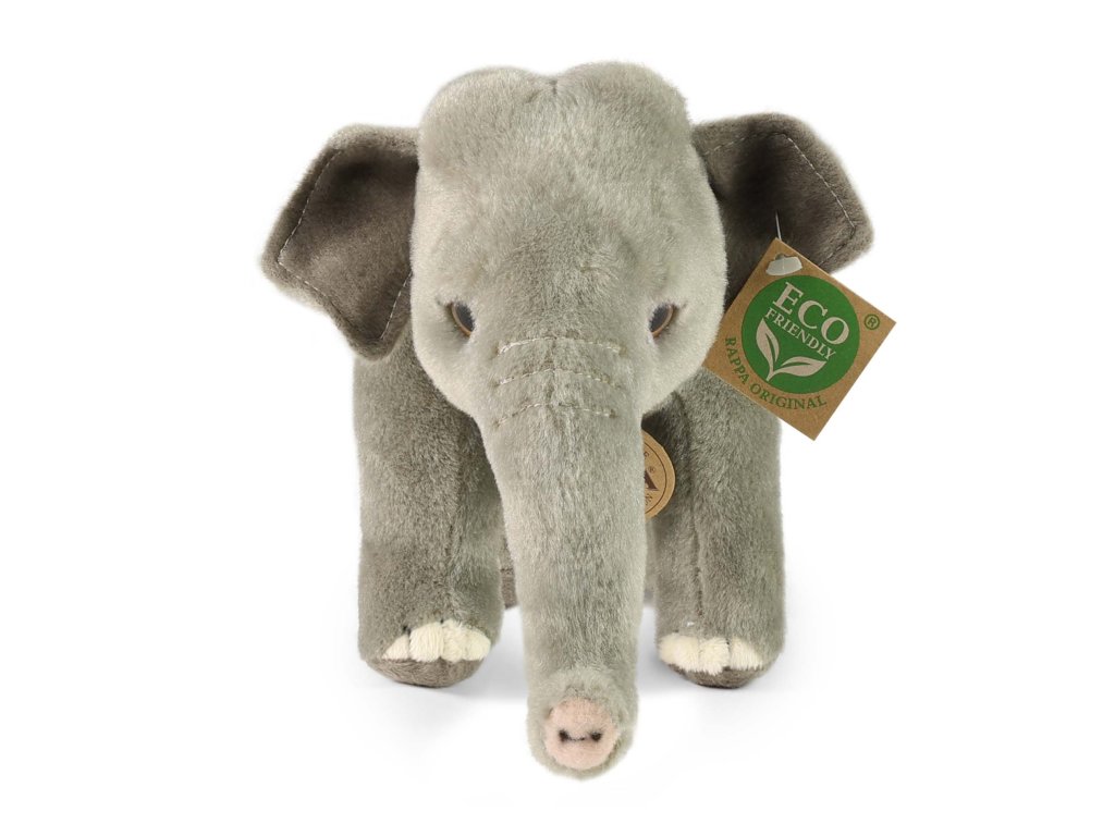 Plyšový slon měří 20 cm a díky těm nejkvalitnějším materiálům se řadí do Exkluzivní kolekce plyšových hraček značky Rappa. Díky ručnímu zpracování každého kusu navíc vypadá jako živý. Proč označení ECO-FRIENDLY? Rappa si je vědoma všech dopadů na životního prostředí, zaměřuje se na udržitelnost a omezení používání plastů na minimum. Proto je výplň hraček vyrobena z recyklovaných materiálů, zejména PET lahví. Ta je však zcela nezávadná a vhodná i pro děti od narození. FUN FACT: Věděli jste, že sloni dokážou používat své uši jako klimatizaci? Když je jim horko, mávají ušima, což pomáhá ochlazovat krev, která jimi protéká.