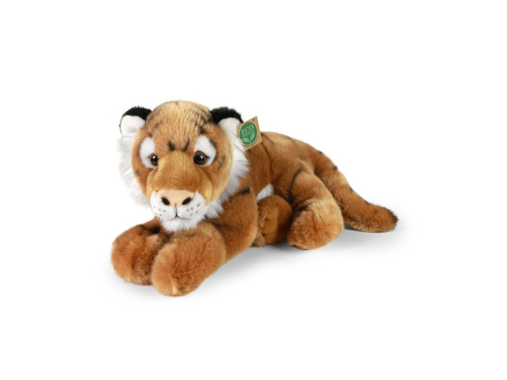 Nádherný plyšový tygr o délce 36 cm. Tygr je vyroben z vysoce kvalitní plyše a je tak součástí exkluzivní kolekce plyšových hraček RAPPA. Co to vlastně ECO-FRIENDLY znamená? Výplň plyšové hračky je vyrobena z recyklovaných PET lahví. Tento materiál je zcela bezpečný, na omak nerozeznatelný od standardní výplně a plně atestovaný pro bezpečnost i těch nejmenších. Rozhodli jsme se jít zelenou cestou co nejméně zatěžující životní prostředí- cestou ECO-FRIENDLY.