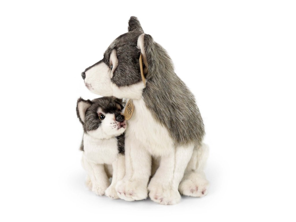 Rozkošný plyšový vlk s mláďátkem nesmí chybět ve tvé sbírce plyšáků! Sedící vlk je vyroben z exkluzivní, vysoce kvalitní plyše a jeho výška je cca 27 cm. Mláďátko je spojeno s velkým plyšovým zvířátkem pouze nití a lze jej tedy jednoduše odstřihnutím oddělit. Co to vlastně ECO-FRIENDLY znamená? Výplň plyšové hračky je vyrobena z recyklovaných PET lahví. Tento materiál je zcela bezpečný, na omak nerozeznatelný od standartní výplně a plně atestovaný pro bezpečnost i těch nejmenších. Rozhodli jsme se jít zelenou cestou co nejméně zatěžující životní prostředí- cestou ECO-FRIENDLY.