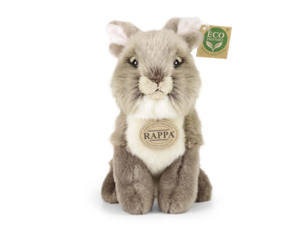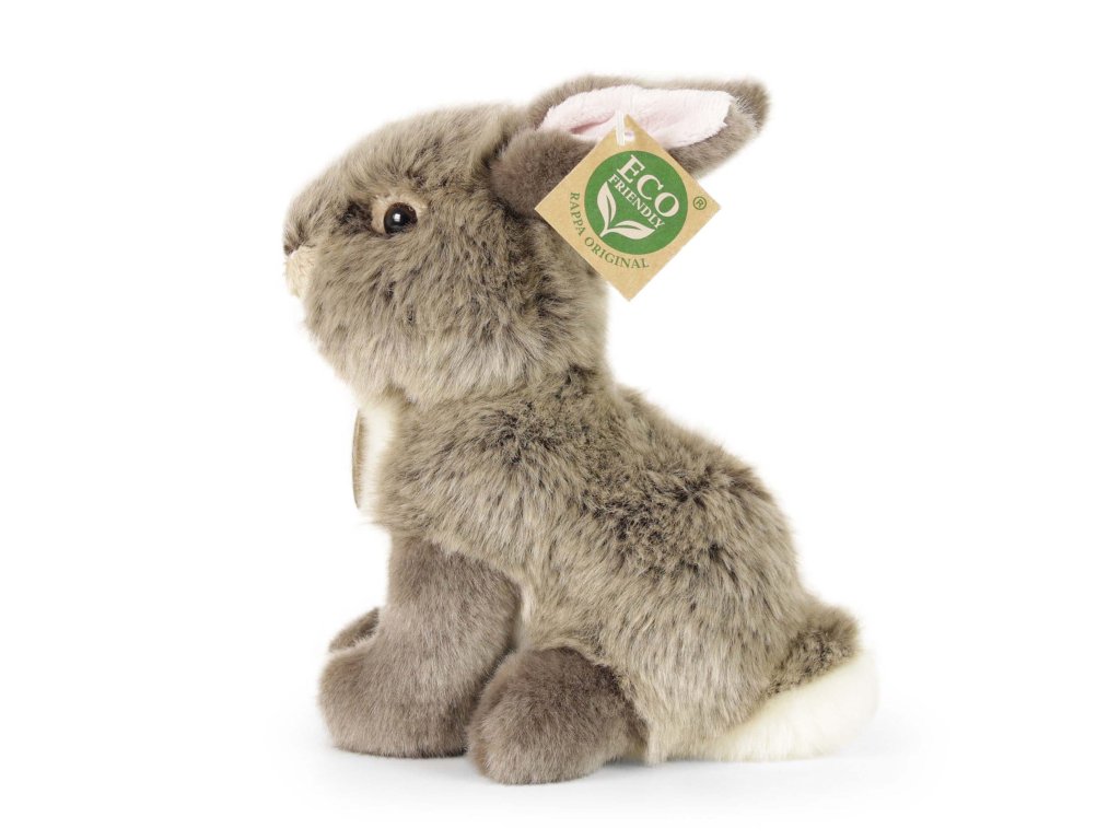 Sedící plyšový zajíc o velikosti 20 cm. Zajíc je vyroben z vysoce kvalitní plyše a je tak součástí exkluzivní kolekce plyšových hraček RAPPA. Co to vlastně ECO-FRIENDLY znamená? Výplň plyšové hračky je vyrobena z recyklovaných PET lahví. Tento materiál je zcela bezpečný, na omak nerozeznatelný od standardní výplně a plně atestovaný pro bezpečnost i těch nejmenších. Rozhodli jsme se jít zelenou cestou co nejméně zatěžující životní prostředí- cestou ECO-FRIENDLY.