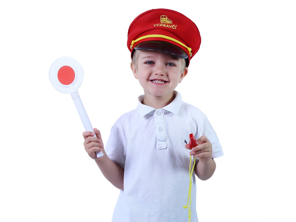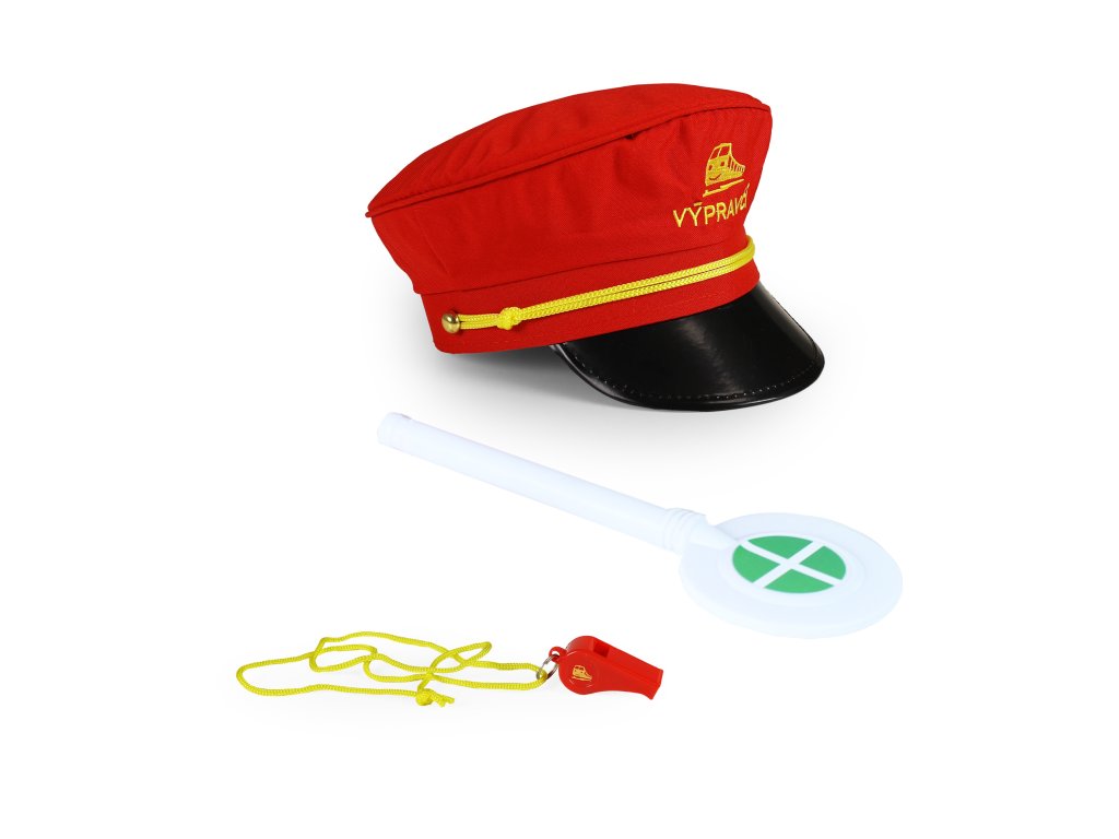Jsi fanda do železnice? V tom případě ti nesmí chybět tato báječná sada výpravčího! Najdeš v ní stylovou červenou čepici s výšivkou, píšťalku a plácačku. Tak teď už jenom nasadit čepici, zapískat na píšťalku, zvednout plácačku a vlak může konečně vyjet ze stanice!