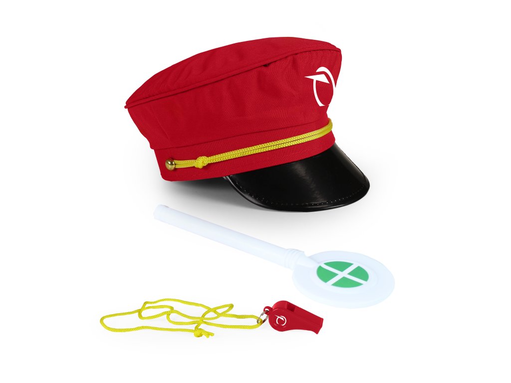 Chceš si hrát na výpravčího? V tom případě ti nesmí chybět tato báječná sada. Najdeš v ní stylovou čepici s logem Železniční společnosti Slovensko, píšťalku a terčík. Navíc si můžeš vystřihnout z obalu 4 jízdenky a 1 průkaz ZSSK. Tak už jenom nasaď čepici, zapískej na píšťalku, zvedni terčík a vlak může konečně vyjet ze stanice!
