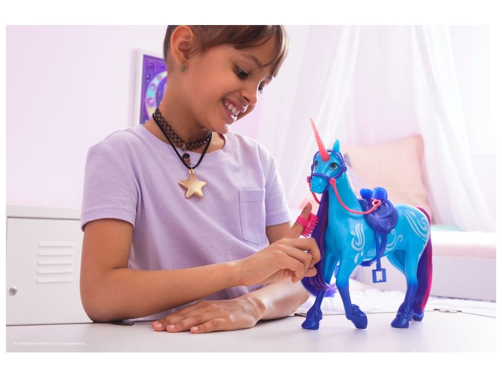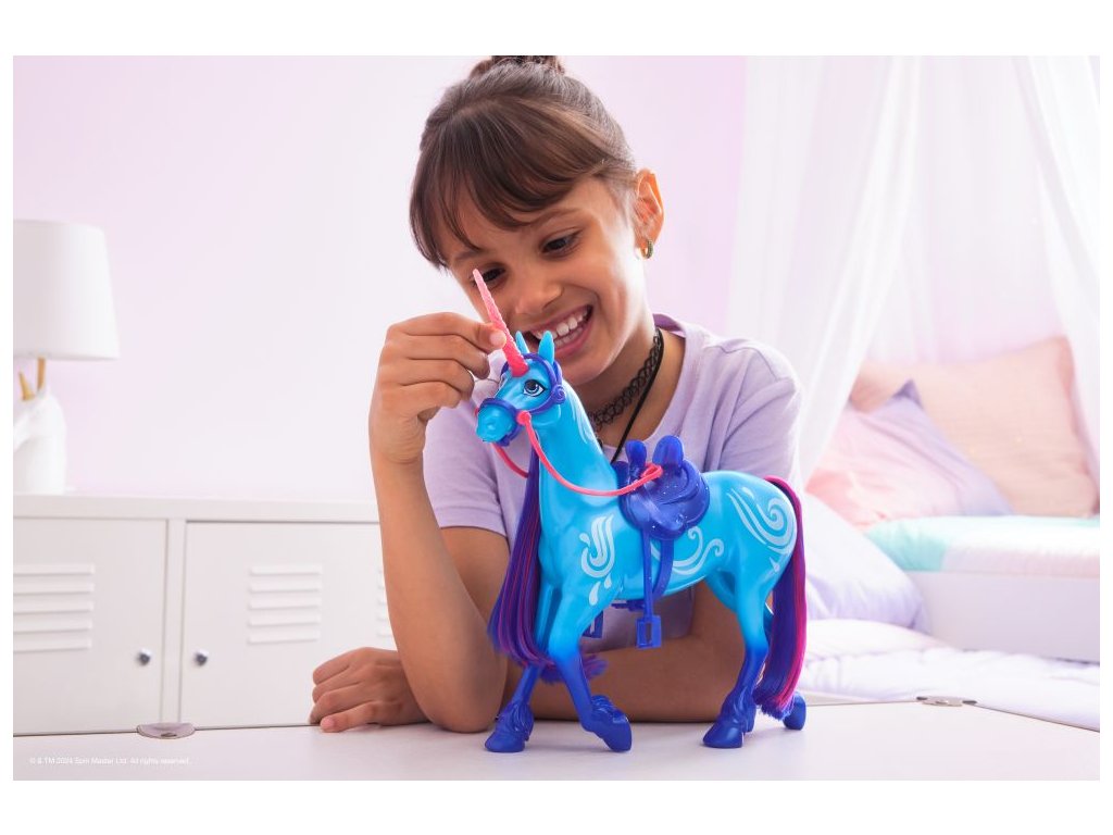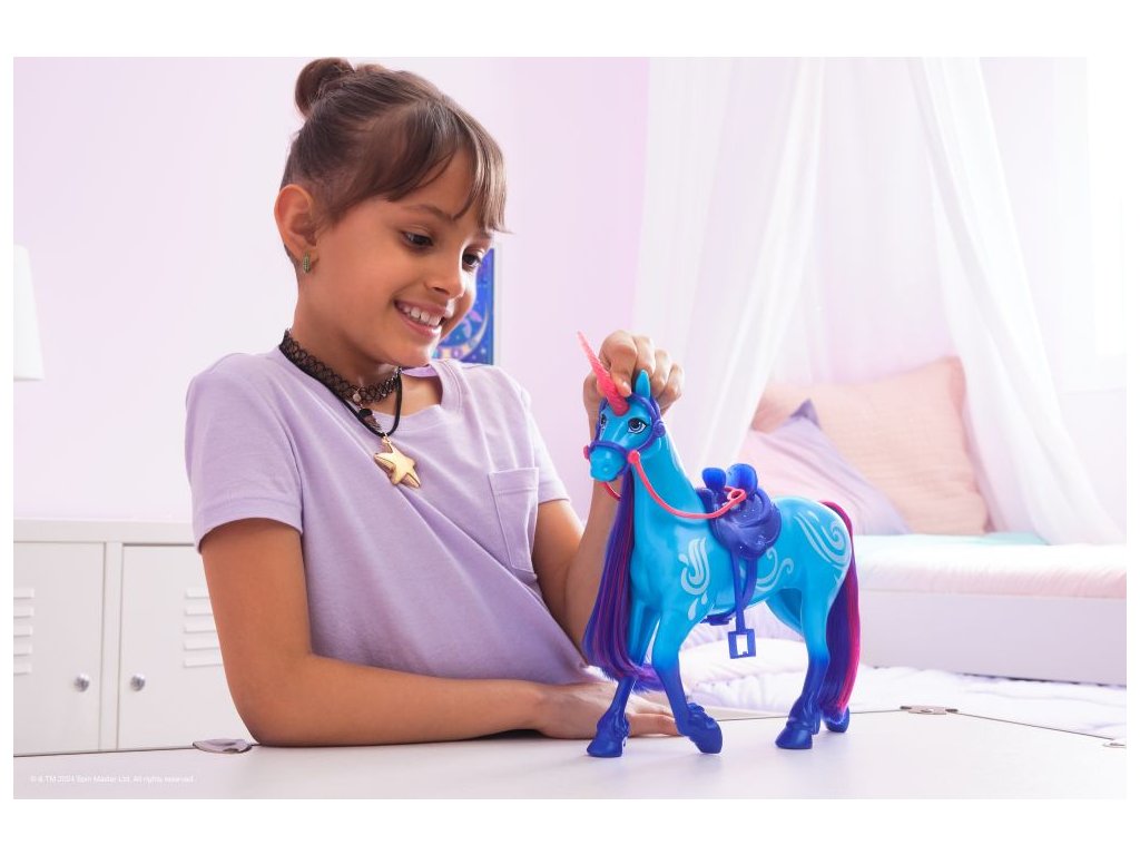 Doplňte svou sbírku panenek z Jednorožčí akademie o Isabelina jednorožce Řeku! Díky této bezmála 28cm hračce na motivy animovaného seriálu od NETFLIXu podle bestsellerové knižní série, kde přátelství drží otěže osudu, laskavá a plachá Řeka opravdu ožije. Řeka disponuje krásnými detaily, perleťovými znaky vodní magie na boku, majestátním třpytivým rohem, barevnou hřívou a ocasem a odnímatelnou uzdou a sedlem pro ještě více zábavy. Jemně posuňte Řece hlavu, abyste probudili její osobnost a spolu s Isabel znovu prožili magický zážitek sblížení jednorožce a jezdce. Vykartáčujte Řece její měkkou hřívu a ocas pomocí Isabelina stylingového hřebenu (není součástí balení, prodává se samostatně s panenkou) a vydejte se za dobrodružstvím, abyste ochránili Jednorožčí ostrov a jeho kouzlo! Chcete-li objevit všechny způsoby, jak si užít svět Jednorožčí akademie se svými oblíbenými postavami, prohlédněte si panenky Sofie a Avy a jejich jednorožců světelné duhové Polárky a Lístka (prodávají se samostatně) a rozšiřte svůj kouzelný svět. Kouzelné pouto mezi studenty Jednorožčí akademie a jejich jednorožci rozproudí nekonečné příběhy plné dětské představivosti. Určeno pro děti, které mají rády jednorožce a koně, panenky a doplňky, hračky pro panenky, sběratelské předměty, plyšové hračky a další. Hračky s tematikou Jednorožčí akademie jsou perfektním dárkem pro dívky k narozeninám nebo jakékoli jiné příležitosti. Přeneste kouzlo Jednorožčí akademie k sobě domů díky panence Řeky!