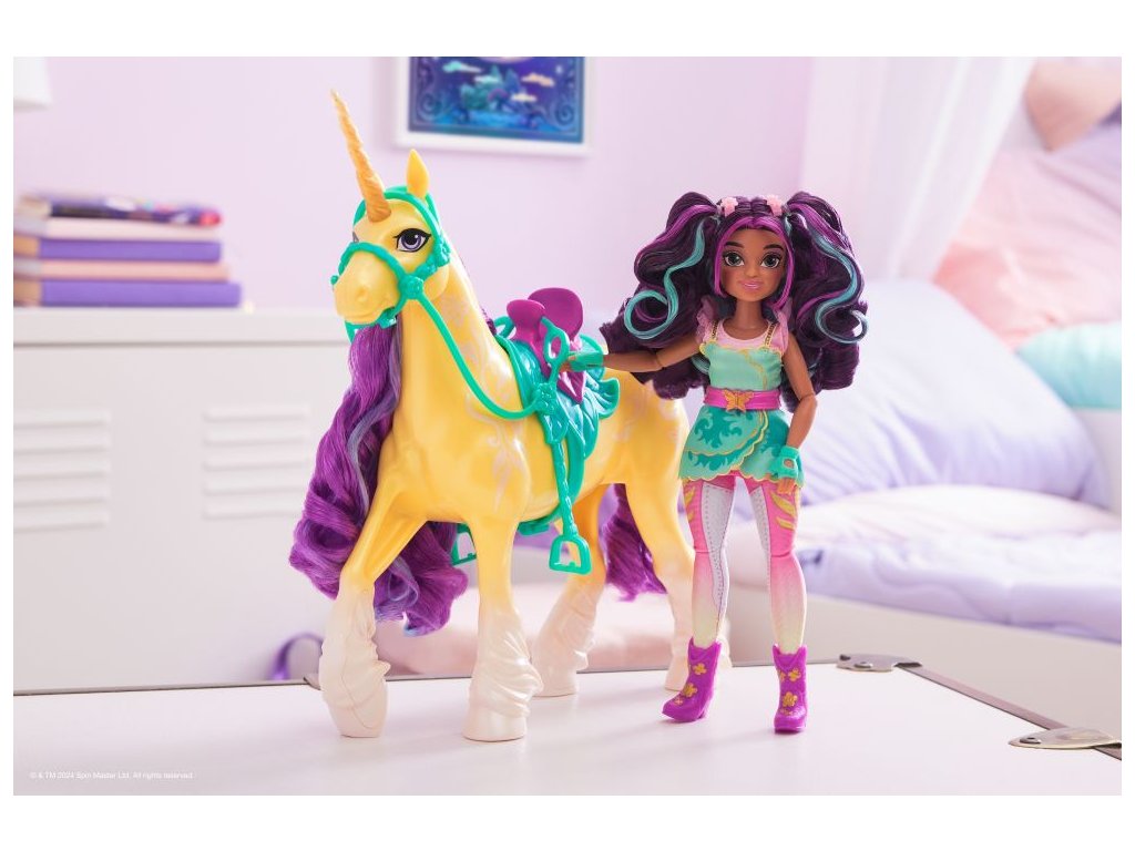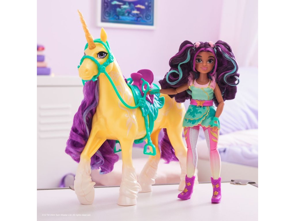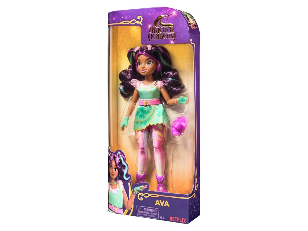 Vydejte se na okouzlující dobrodružství z Jednorožčí akademie i u sebe doma díky módním panenkám Sofie, Avy a Isabel! Díky těmto 24cm panenkám pro dívky na motivy animovaného seriálu od NETFLIXu podle bestsellerové knižní série, kde přátelství drží otěže osudu, vaše oblíbené postavy doopravdy ožijí. Ava je detailně propracovaná od hlavy až k patě. Její veselá osobnost tkví v jejích vlasech s melírem (včetně stylingového doplňku) a její charakteristické výstroji pro jízdu na jednorožci: růžovo-zelených šatech a kalhotách se znaky rostlinné magie, botách a sponkách do vlasů s květinovými vzory, rukavicích a pásku s motýlkem pro panenky! Díky 9 kloubům může Ava při ochraně Jednorožčího ostrova a jeho kouzla zaujmout různé pózy a vydat se za dobrodružstvím na svém jednorožčím příteli Lístkovi (prodává se samostatně)! Kouzelné pouto mezi studenty Jednorožčí akademie a jejich jednorožci rozproudí nekonečné příběhy plné dětské představivosti. Chcete-li objevit všechny způsoby, jak si užít svět Jednorožčí akademie se svými oblíbenými postavami, si prohlédněte panenky Sofie a Isabel a jejich jednorožců světelné duhové Polárky a Řeky (prodávají se samostatně). Neváhejte si rozšířit svůj kouzelný svět! Určeno pro děti, které mají rády jednorožce a koně, panenky a doplňky, hračky pro panenky, sběratelské předměty, plyšové hračky a další. Hračky s tematikou Jednorožčí akademie jsou perfektním dárkem pro dívky k narozeninám nebo jakékoli jiné příležitosti. Přeneste kouzlo Jednorožčí akademie k sobě domů díky panence Avy!