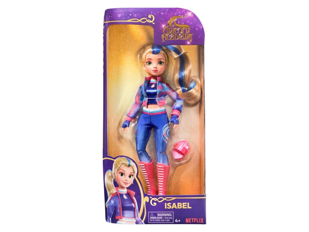 Vydejte se na okouzlující dobrodružství z Jednorožčí akademie i u sebe doma díky módním panenkám Sofie, Avy a Isabel! Díky těmto 24cm panenkám pro dívky na motivy animovaného seriálu od NETFLIXu podle bestsellerové knižní série, kde přátelství drží otěže osudu, vaše oblíbené postavy doopravdy ožijí. Isabel je detailně propracovaná od hlavy až k patě. Její osobnost sportovkyně tkví v česatelných vlasech s modrým melírem (včetně stylingového doplňku) a její charakteristické výstroji pro jízdu na jednorožci: modrém topu, kalhotách se znaky vodní magie, zkrácené jezdecké bundě, šněrovacích botách a jezdeckých rukavicích pro panenky! Díky 9 kloubům může Isabel při ochraně Jednorožčího ostrova a jeho kouzla zaujmout různé pózy a vydat se za dobrodružstvím na svém jednorožci Řece (prodává se samostatně)! Kouzelné pouto mezi studenty Jednorožčí akademie a jejich jednorožci rozproudí nekonečné příběhy plné dětské představivosti. Chcete-li objevit všechny způsoby, jak si užít svět Jednorožčí akademie se svými oblíbenými postavami, prohlédněte si panenky Sofie a Avy a jejich jednorožců světelné duhové Polárky a Lístka (prodávají se samostatně) a rozšiřte svůj kouzelný svět! Určeno pro děti, které mají rády jednorožce a koně, panenky a doplňky, hračky pro panenky, sběratelské předměty, plyšové hračky a další. Hračky s tematikou Jednorožčí akademie jsou perfektním dárkem pro dívky k narozeninám nebo jakékoli jiné příležitosti. Přeneste kouzlo Jednorožčí akademie k sobě domů díky panence Isabel!