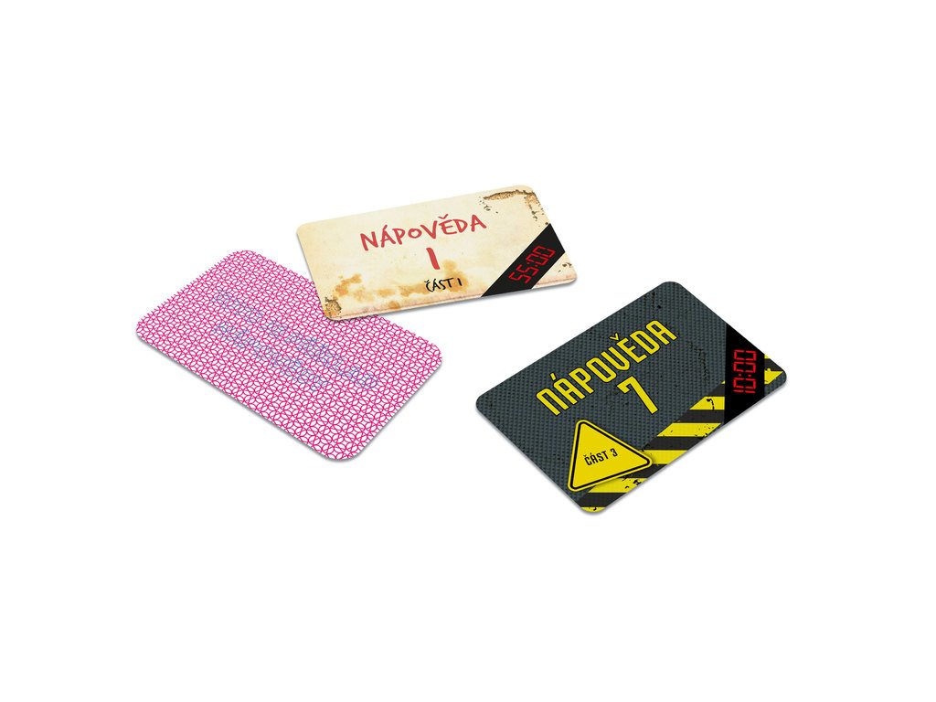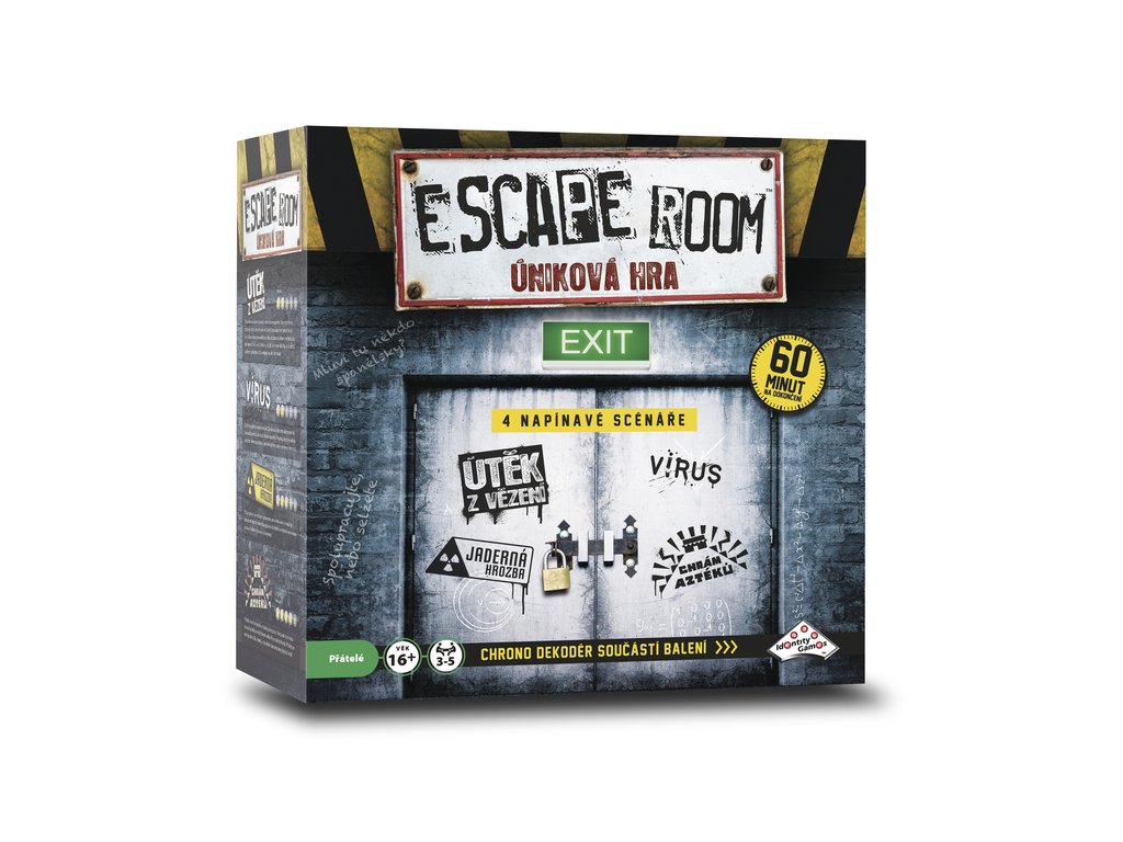 Obsah balení: Chrono dekodér, dekodér nápověd, 16 klíčů, 4x 8 karet s nápovědou, 4 různé scénáře: Útěk z vězení, Jaderná hrozba, Virus a Chrám Aztéků