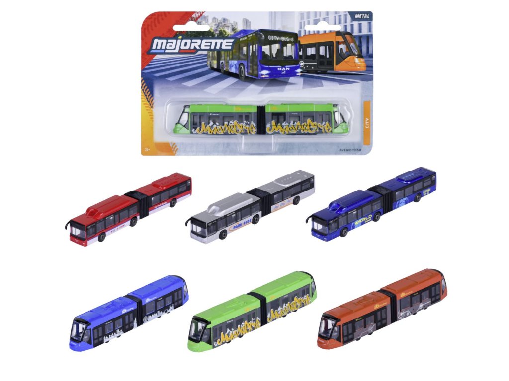 Kovový model autobusu nebo tramvaje na volnoběh. 6 druhů. Délka 20 cm.