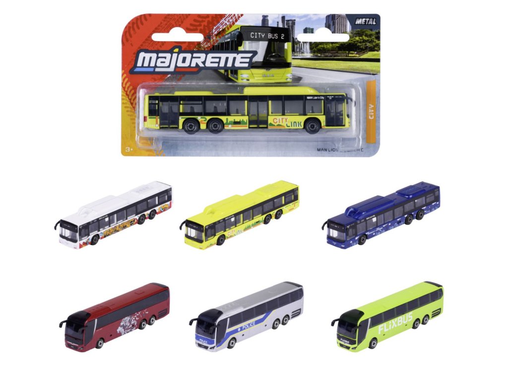 Kovový model autobusu na volnoběh. 6 druhů. Délka 13 cm.