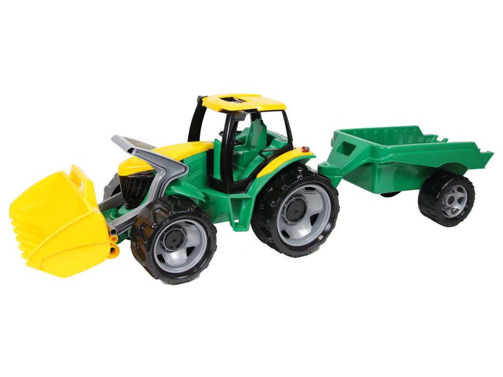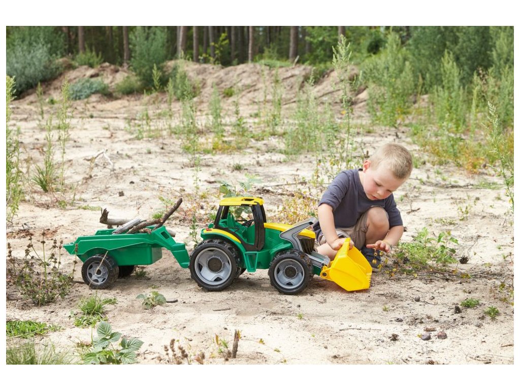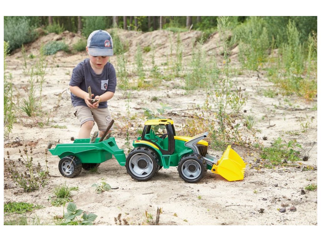 Kvalitně zpracovaný traktor s moderním designem. Byl navrhnut a vyroben tak, aby odpovídal požadovanému modernímu vzhledu, funkčnosti, odolnosti, kvalitnímu zpracování, maximální hrací hodnotě. Velikost 110x28x39cm. Vyrobeno v ČR.
