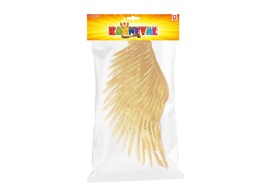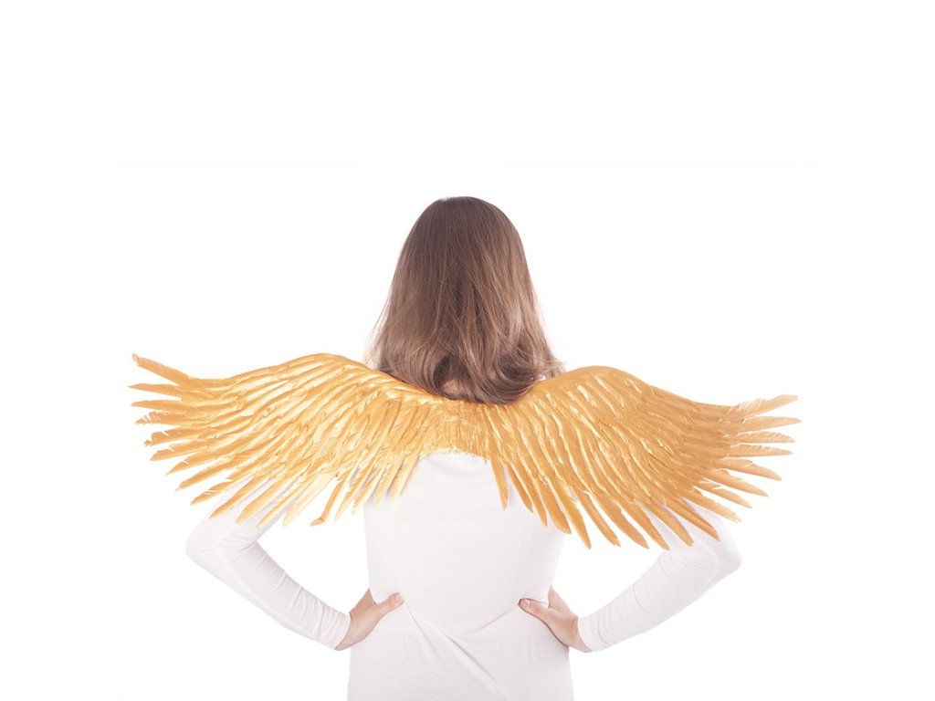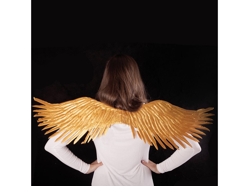 Překrásná křídla pro opravdové anděly ve zlaté barvě! Tento parádní kousek na gumičku je skvělým doplňkem k andělskému kostýmu. Velikost křídel po rozložení je cca 96 cm.