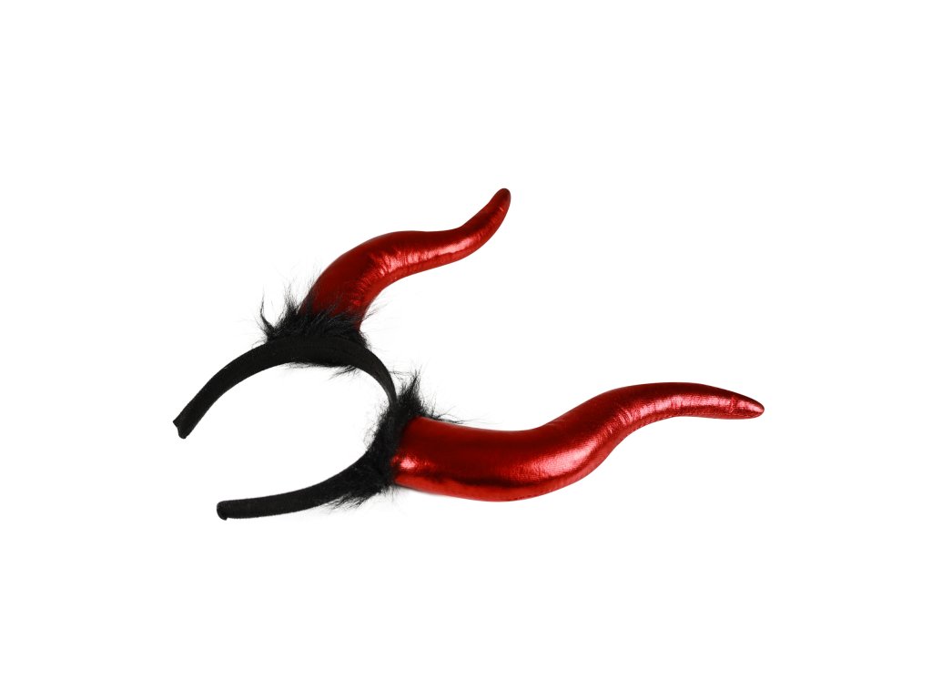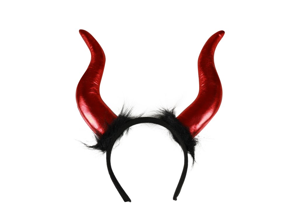 Pekelné čertí maxi rohy na čelence, které jsou zdobeny jemným peřím, určitě perfektně doladí tvůj čertovský kostým!