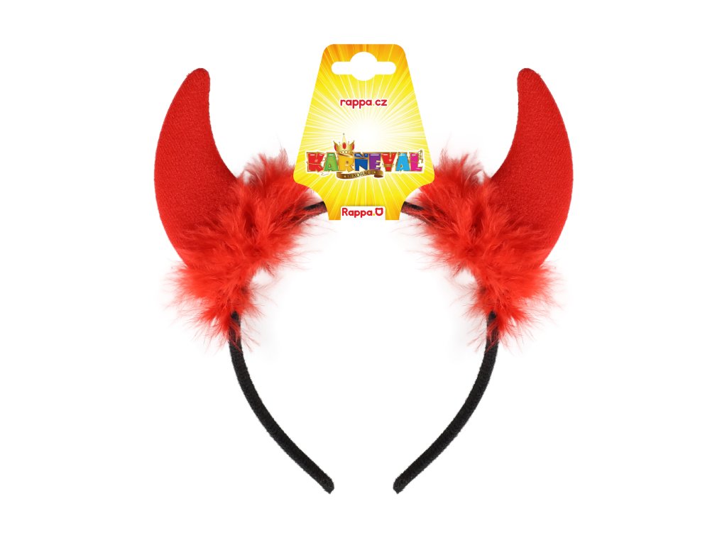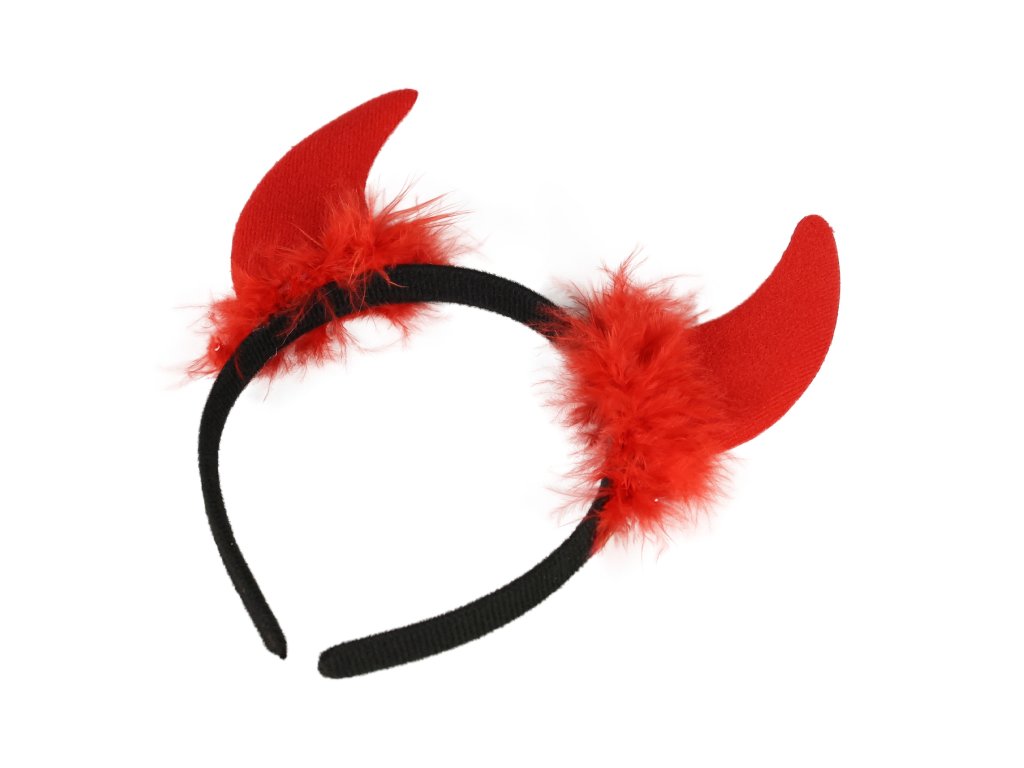 Pekelná čelenka s čertími rohy je senzačním doplňkem na karnevalový večírek nebo vánoční besídku! Čelenka je navíc zdobena červeným peřím.
