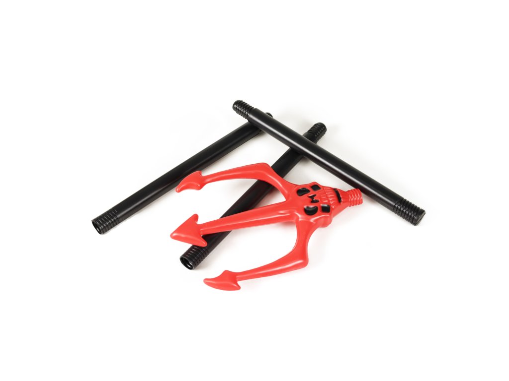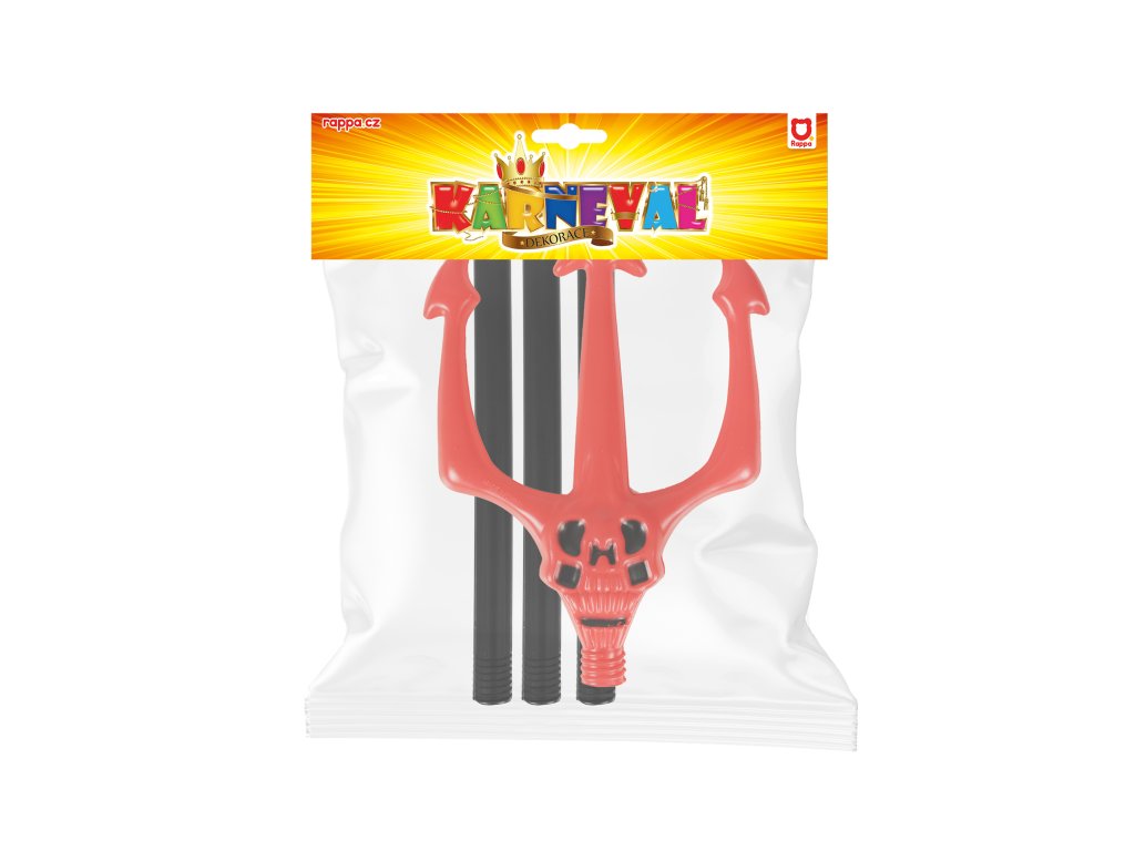 Čertovské vidle jsou nepostradatelným doplňkem k čertovské masce. Vhodné i na Halloween, maškarní ples nebo jinou párty. Tento trojzubec se skládá ze čtyř částí a díky tomu je dobře skladný. Délka vidlí po sestavení je 104 cm.