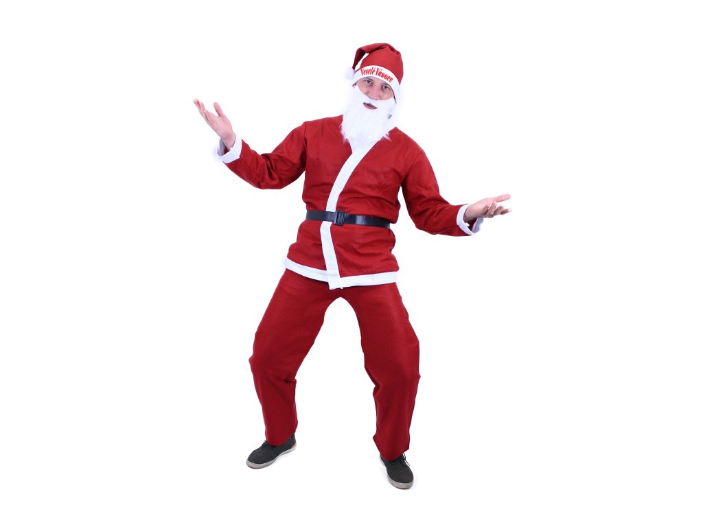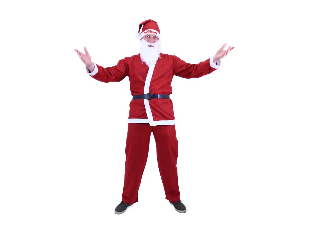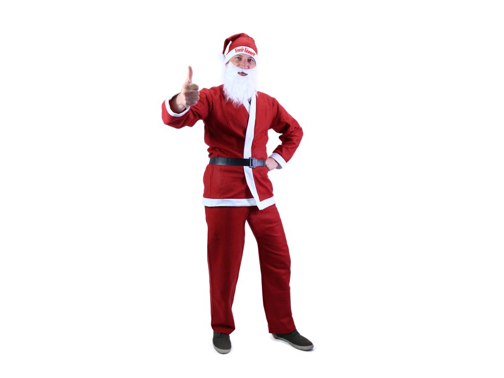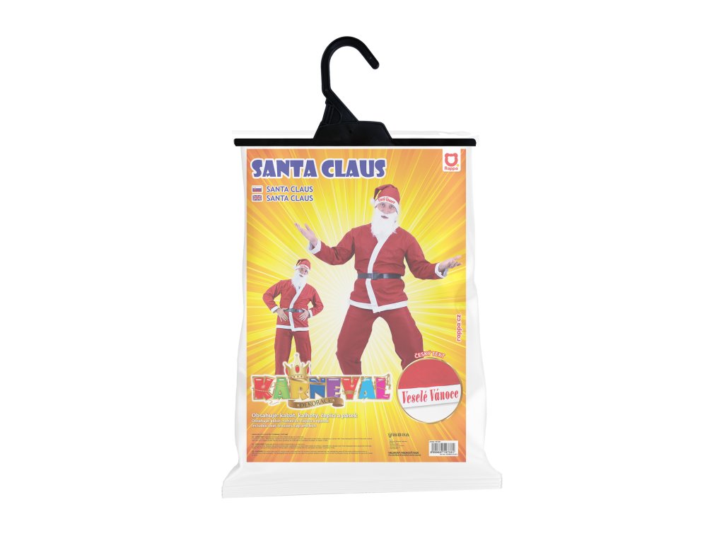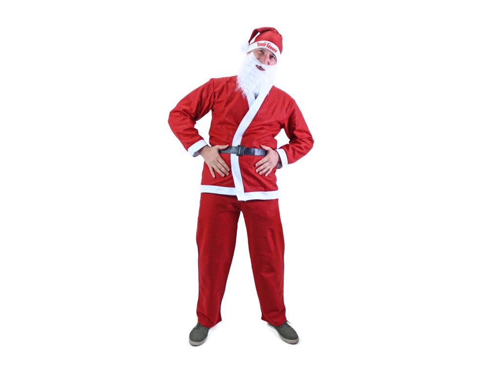 Stylový karnevalový kostým Santa Claus pro dospělé. Obsahuje kalhoty, kabátek, čepici a pásek. Univerzální velikost.
