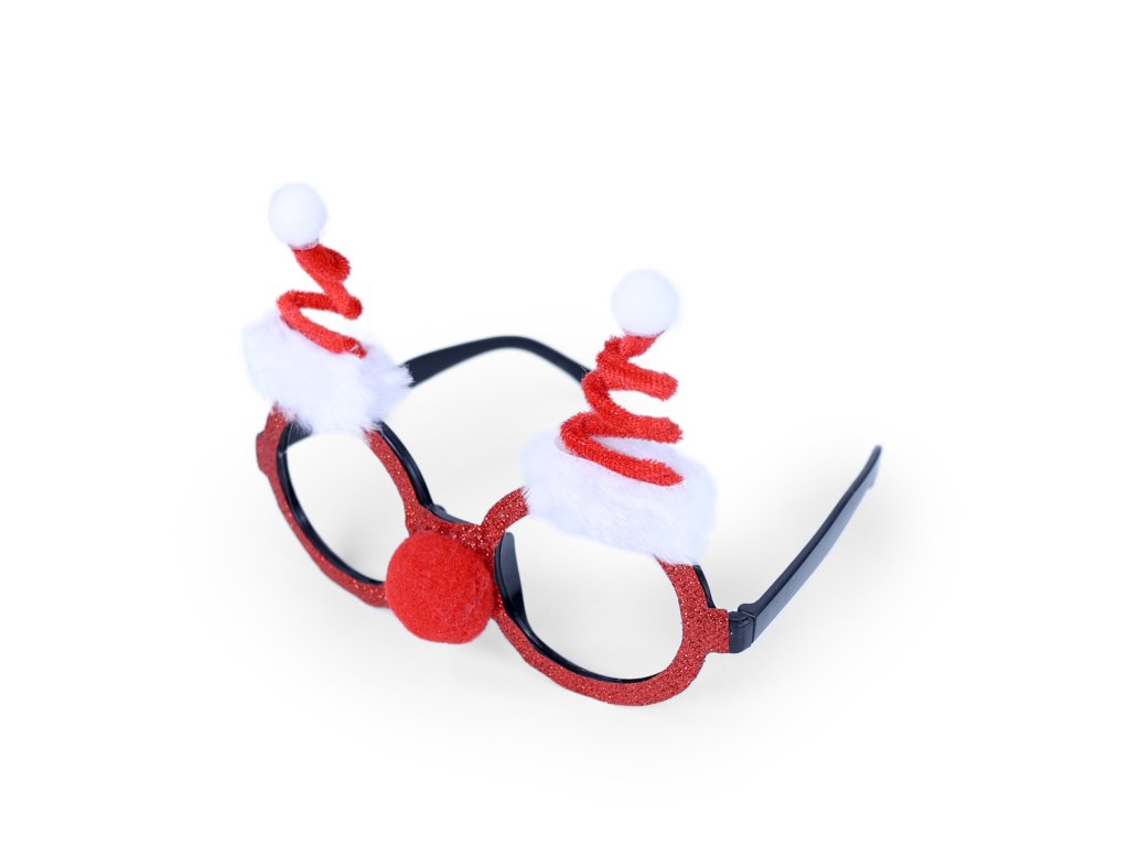 Karnevalové brýle ve vánočním stylu! Brýle jsou vyrobeny z PVC a zdobeny motivem vánočních čepiček Santy. Perfektní doplněk na Vánoce!