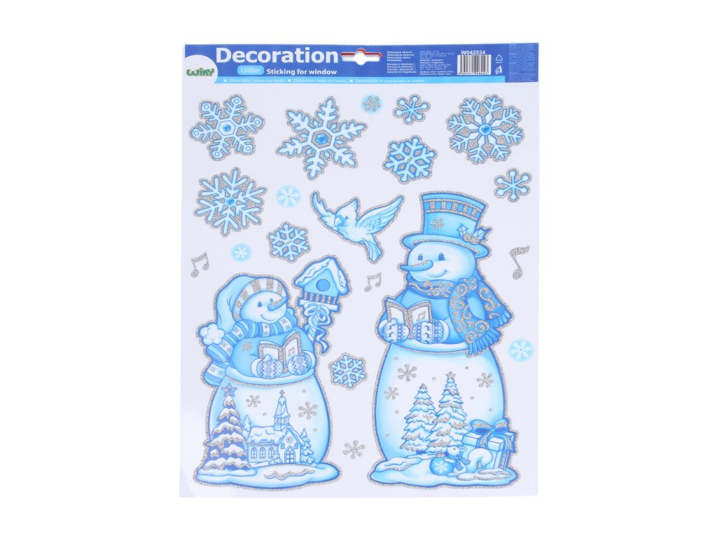 Dekorace okenní 41x29 cm Sněhuláci VÁNOCE