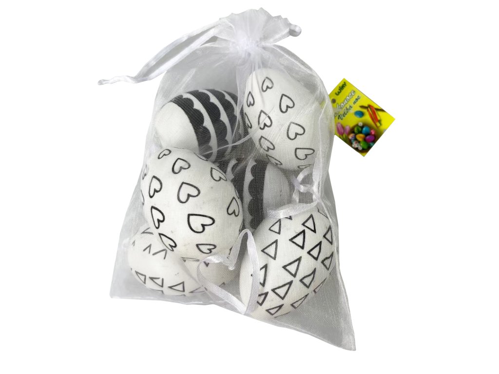 Vajíčko dekorační plastové černobílé 4x6 cm, 6 ks